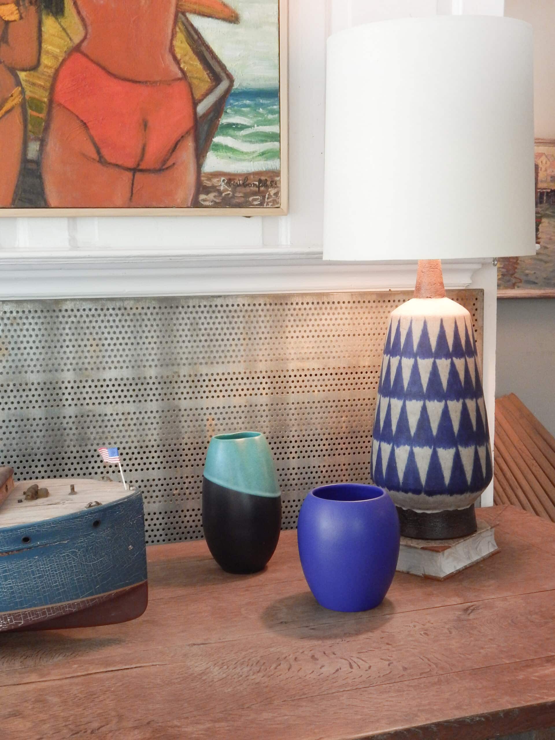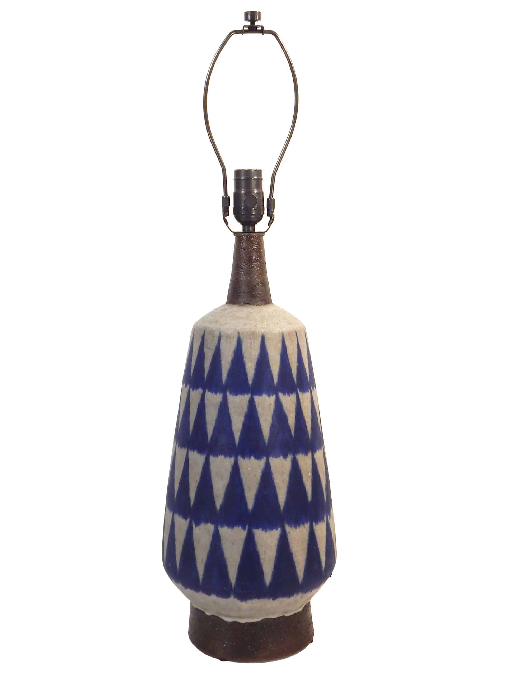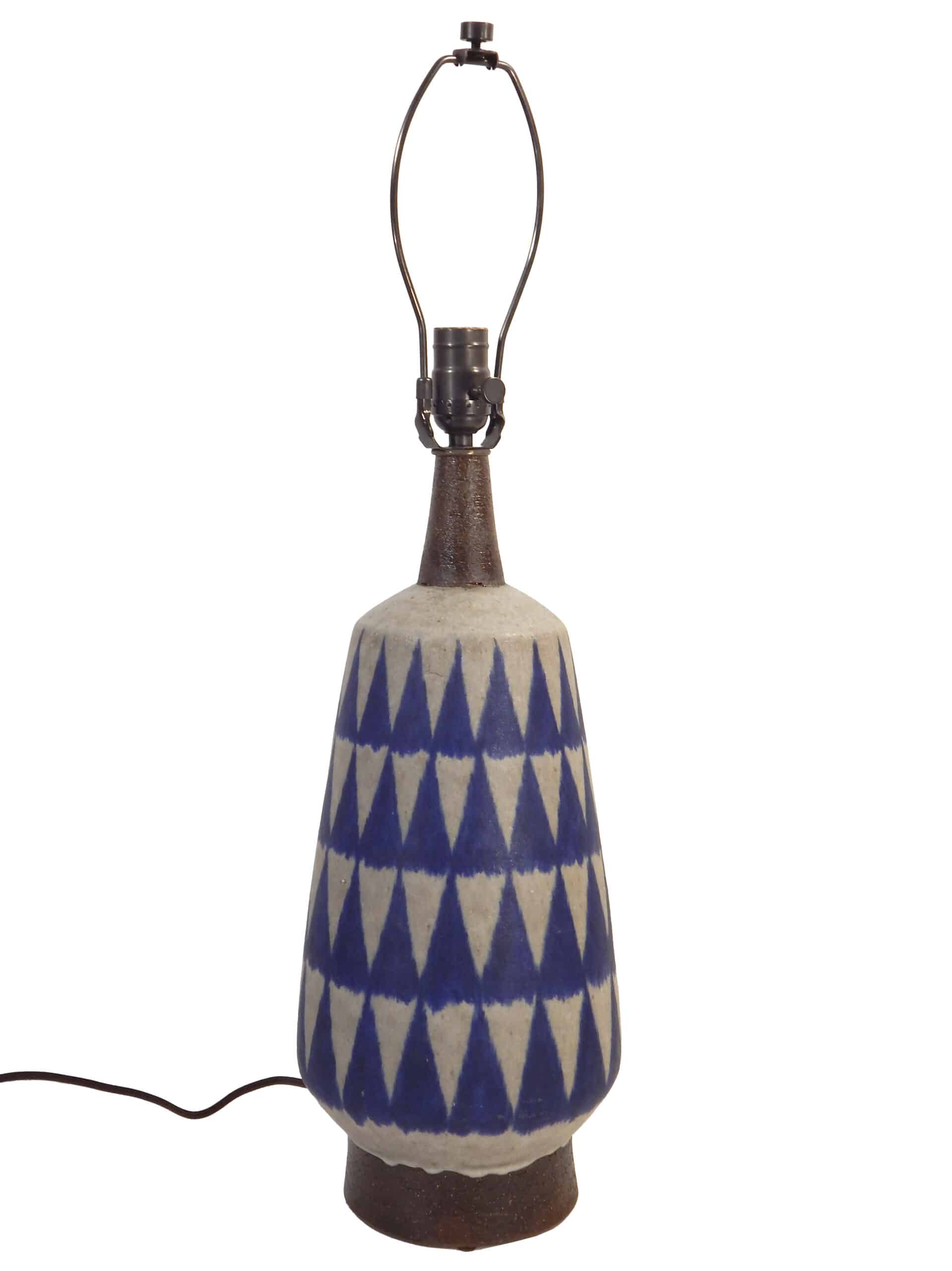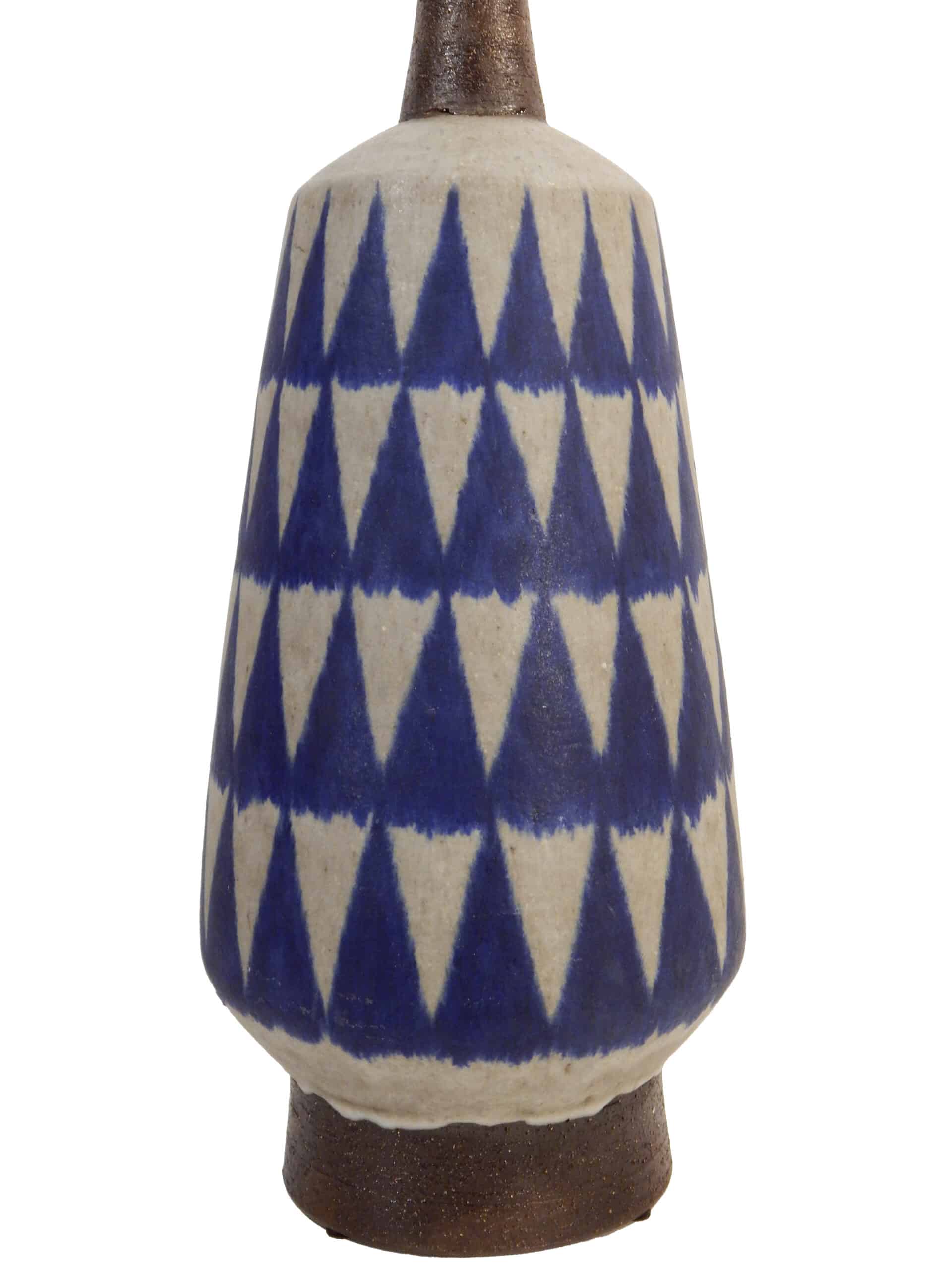 Mid Century Pottery Lamp with Blue and White Triangular Pattern by Thomas Toft