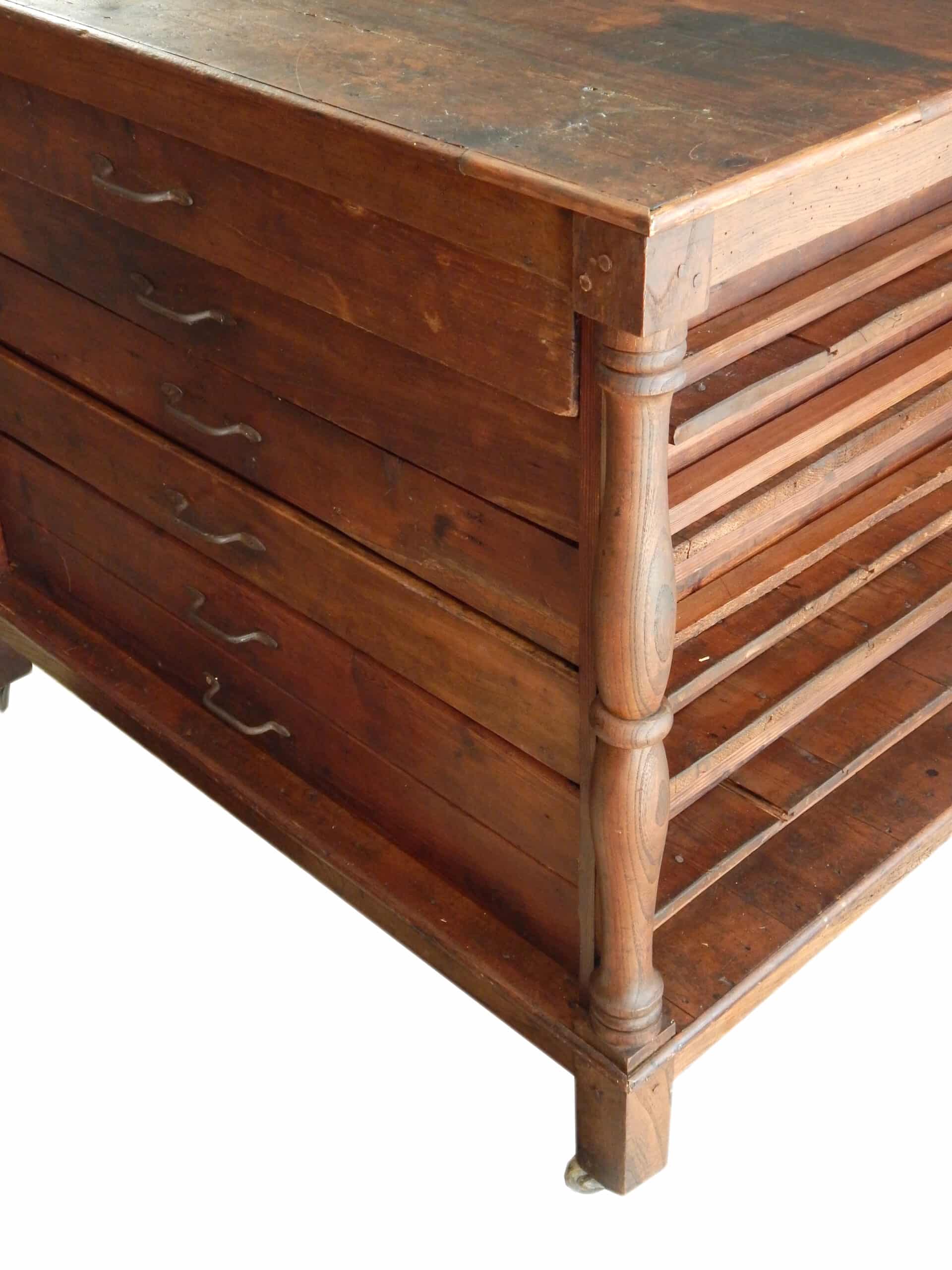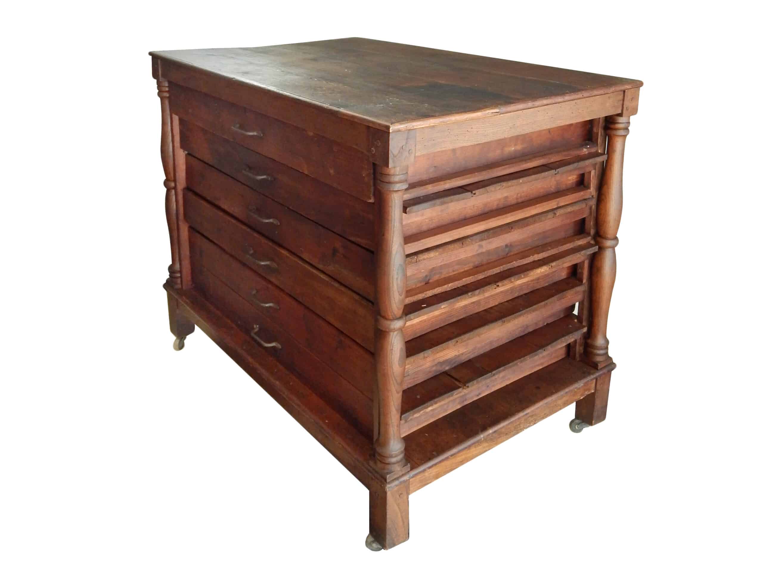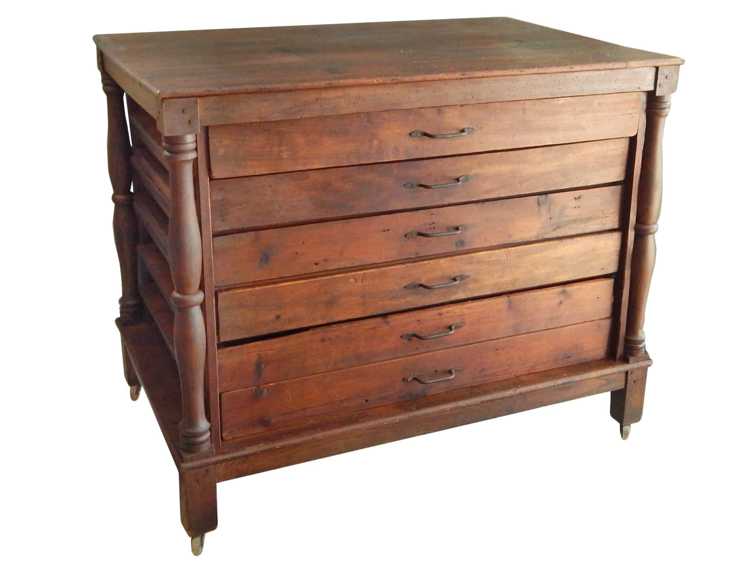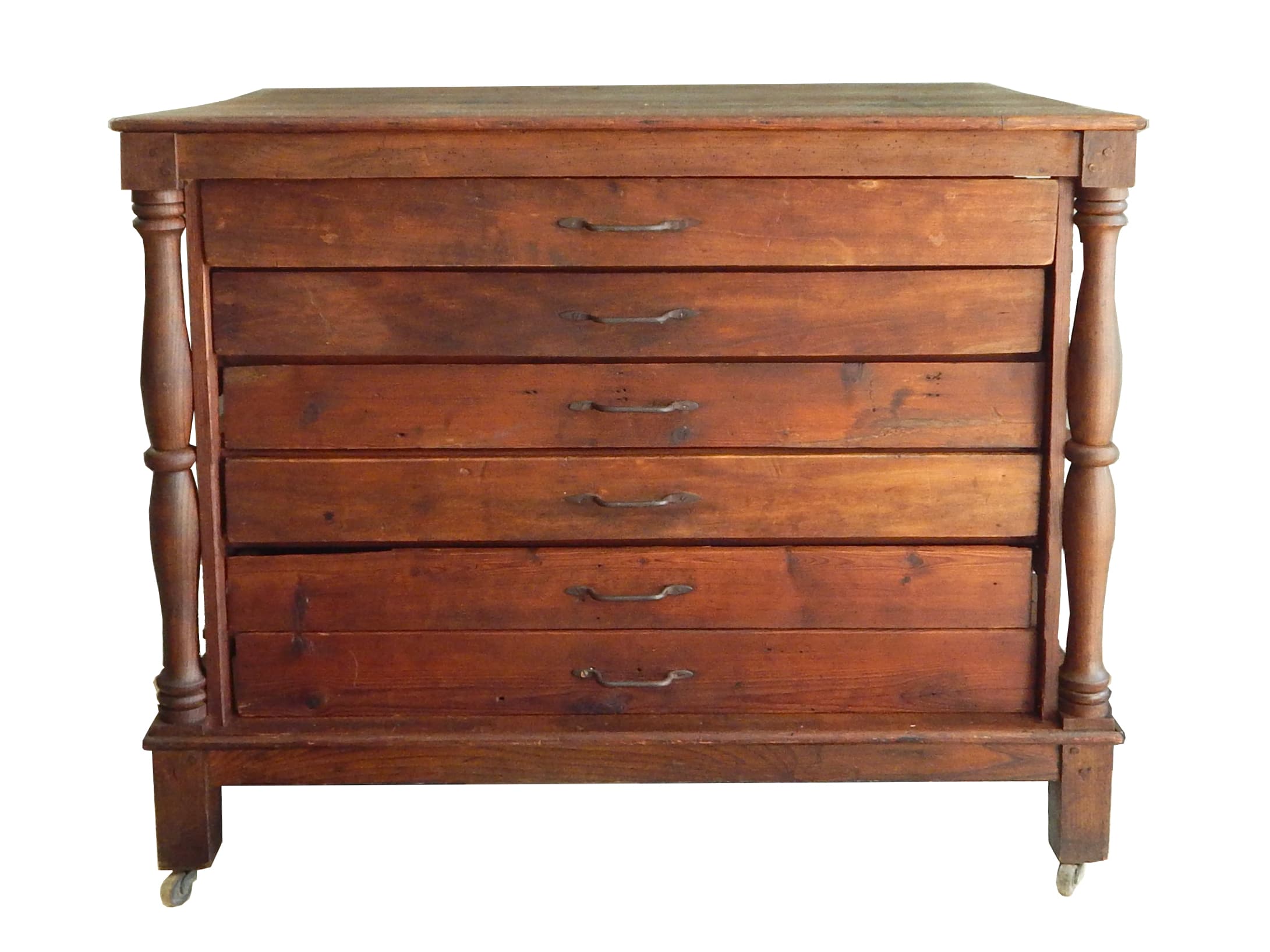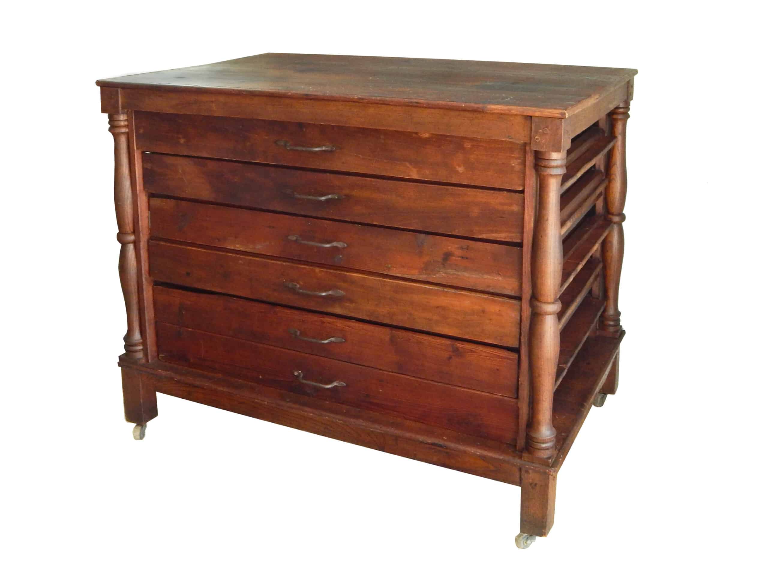 Early Six-Drawer, Flat File Architects’ Chest on Wheels