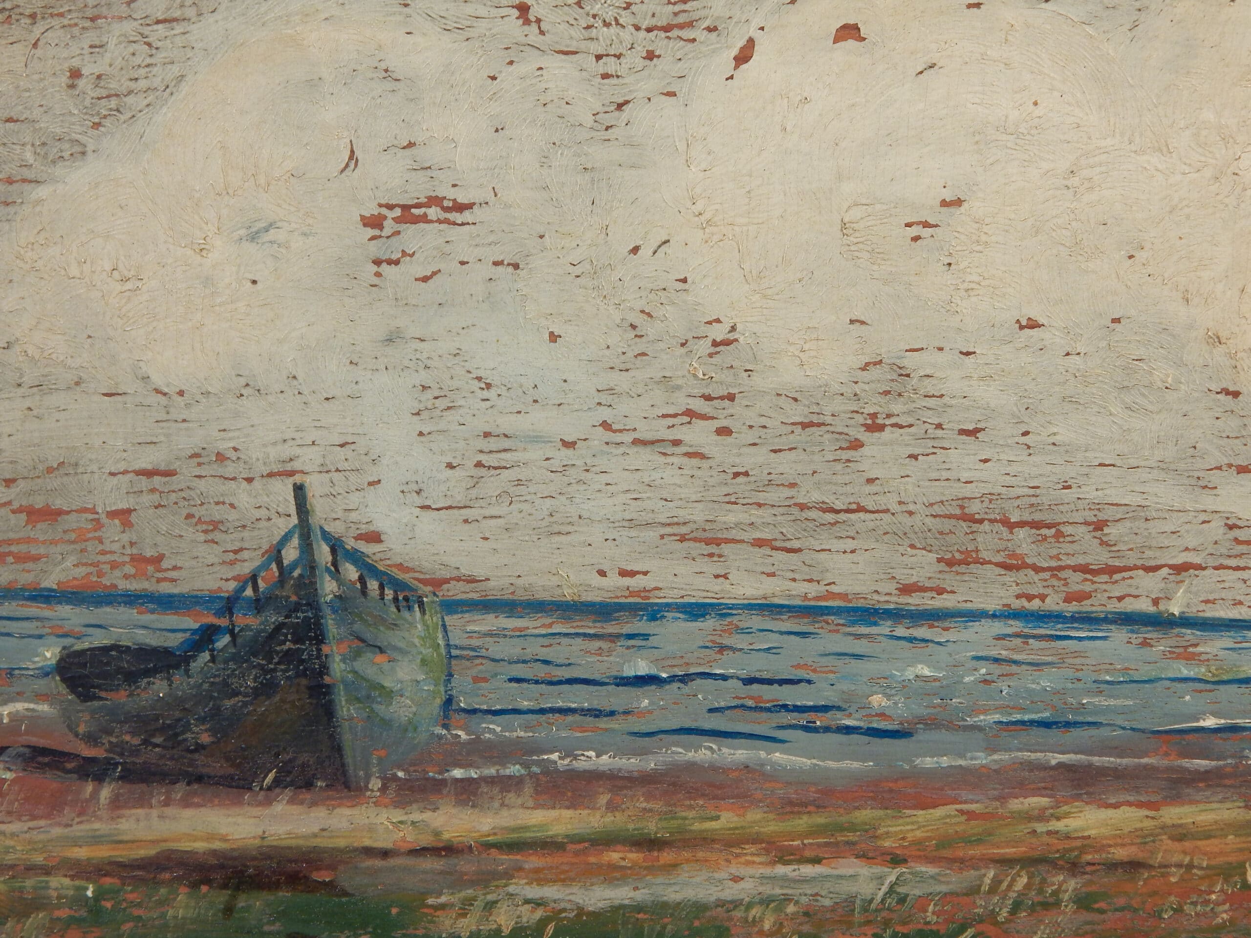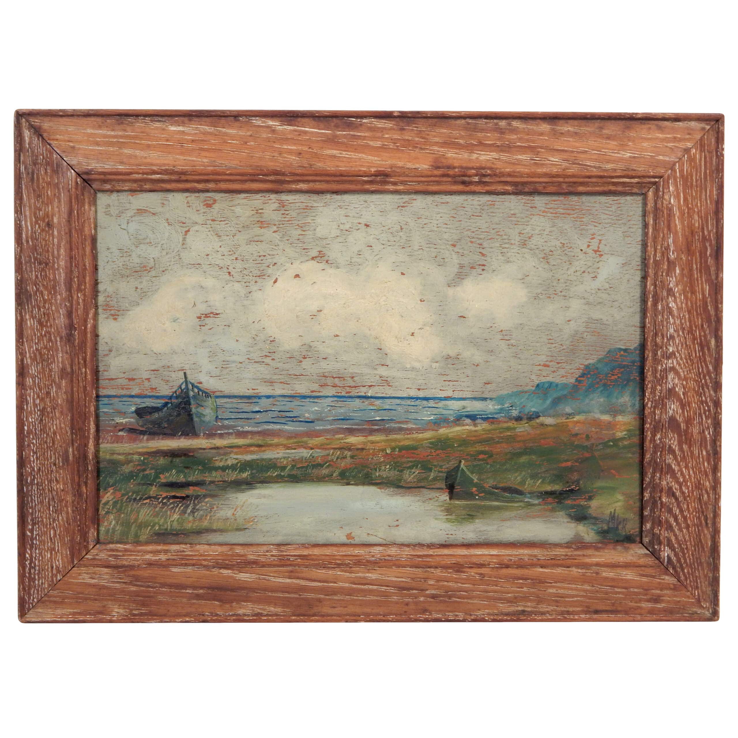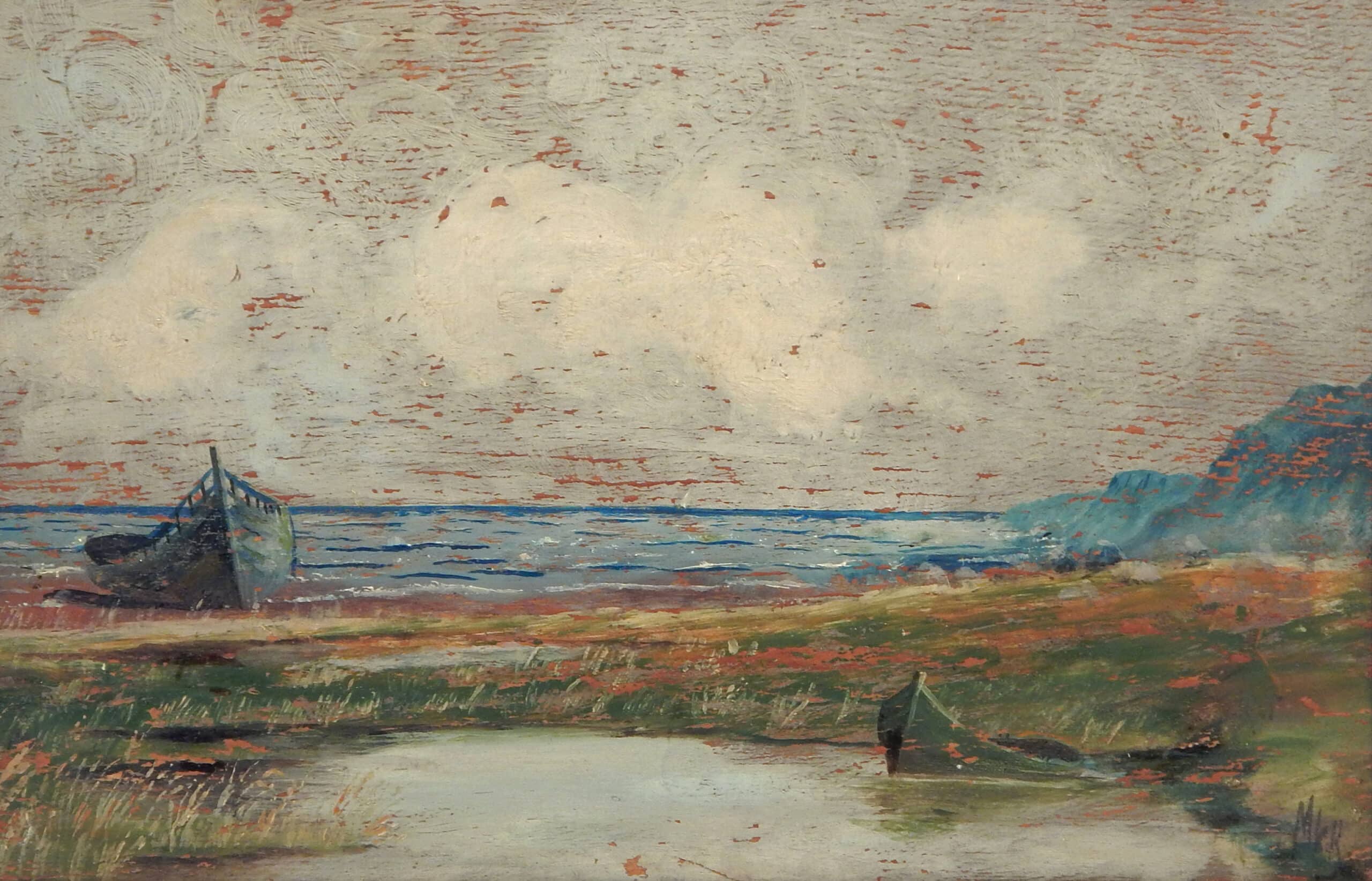 Late 20th Century, Seascape of Two Beached Boats and Tidepool, Signed Mick