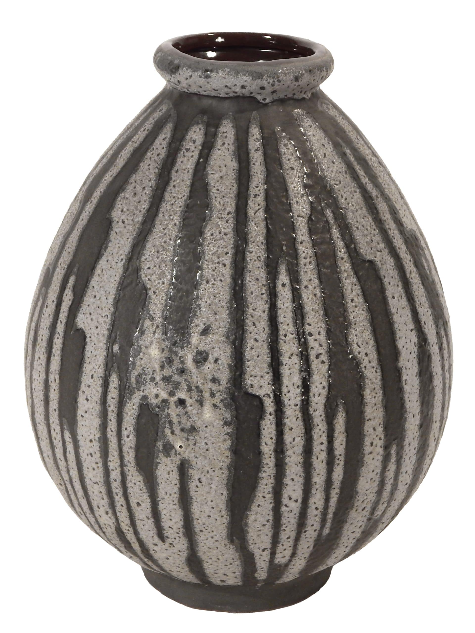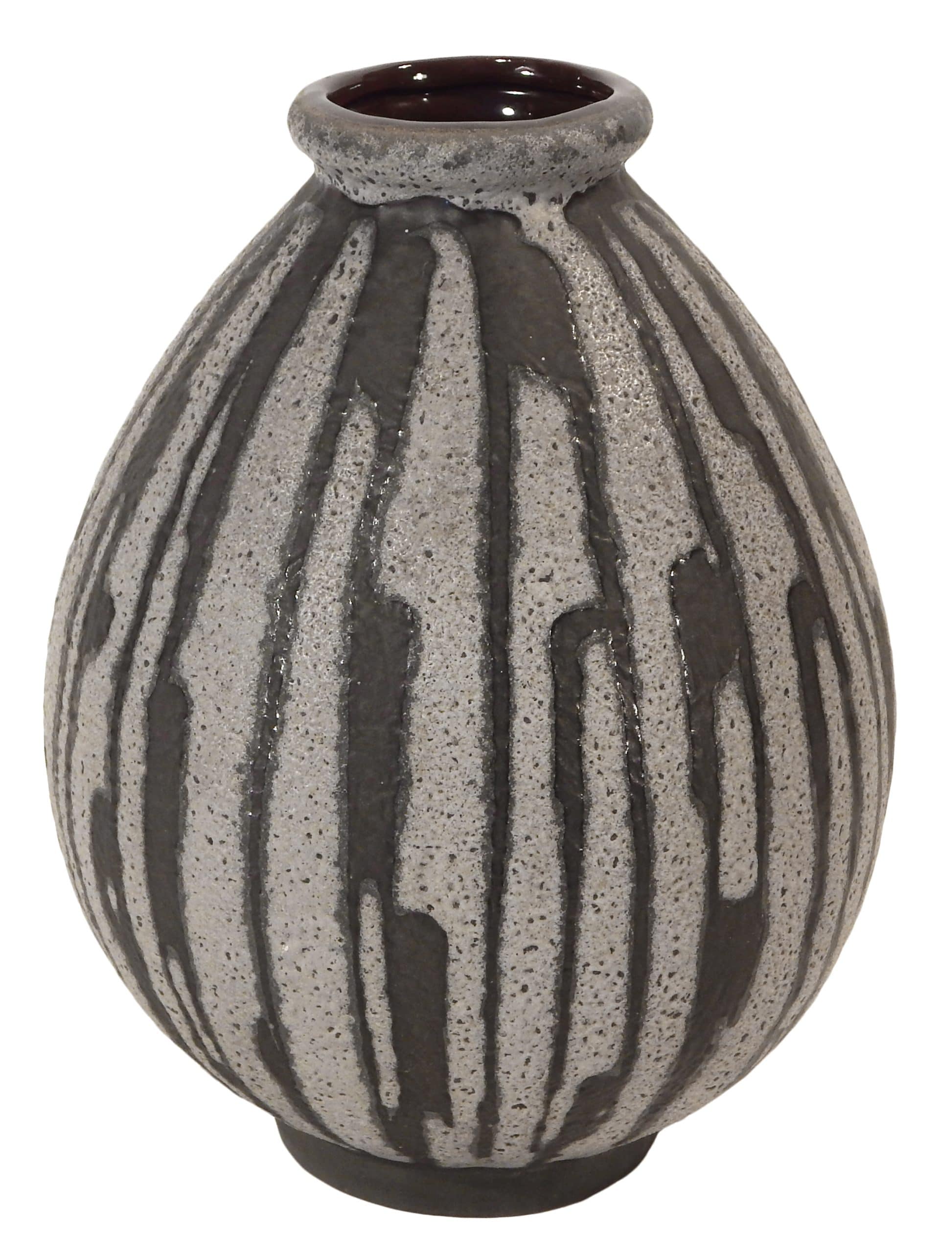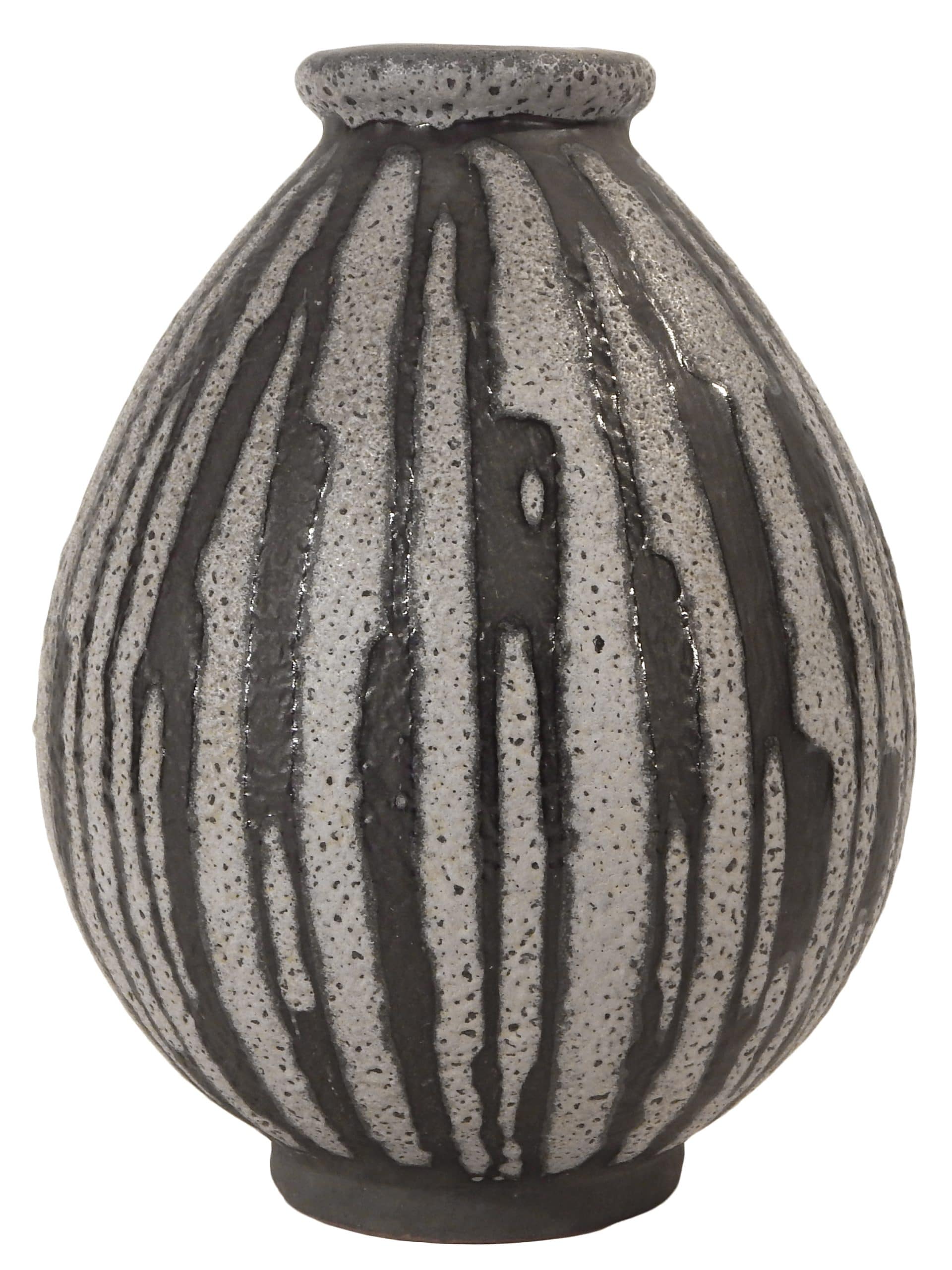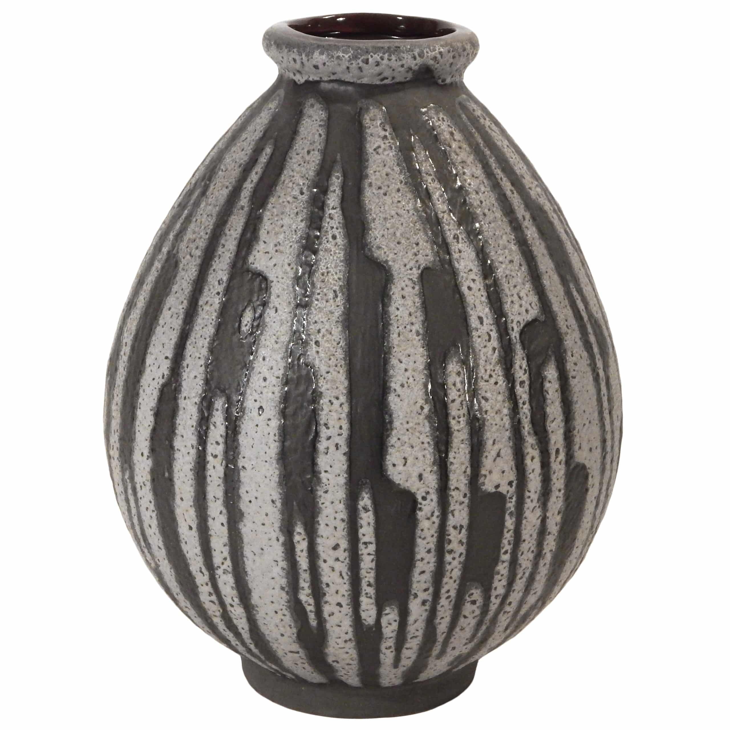 Large Mid Century, Bulbous Carstens Atelier Vase with Deep and Light Gray Drip Glaze