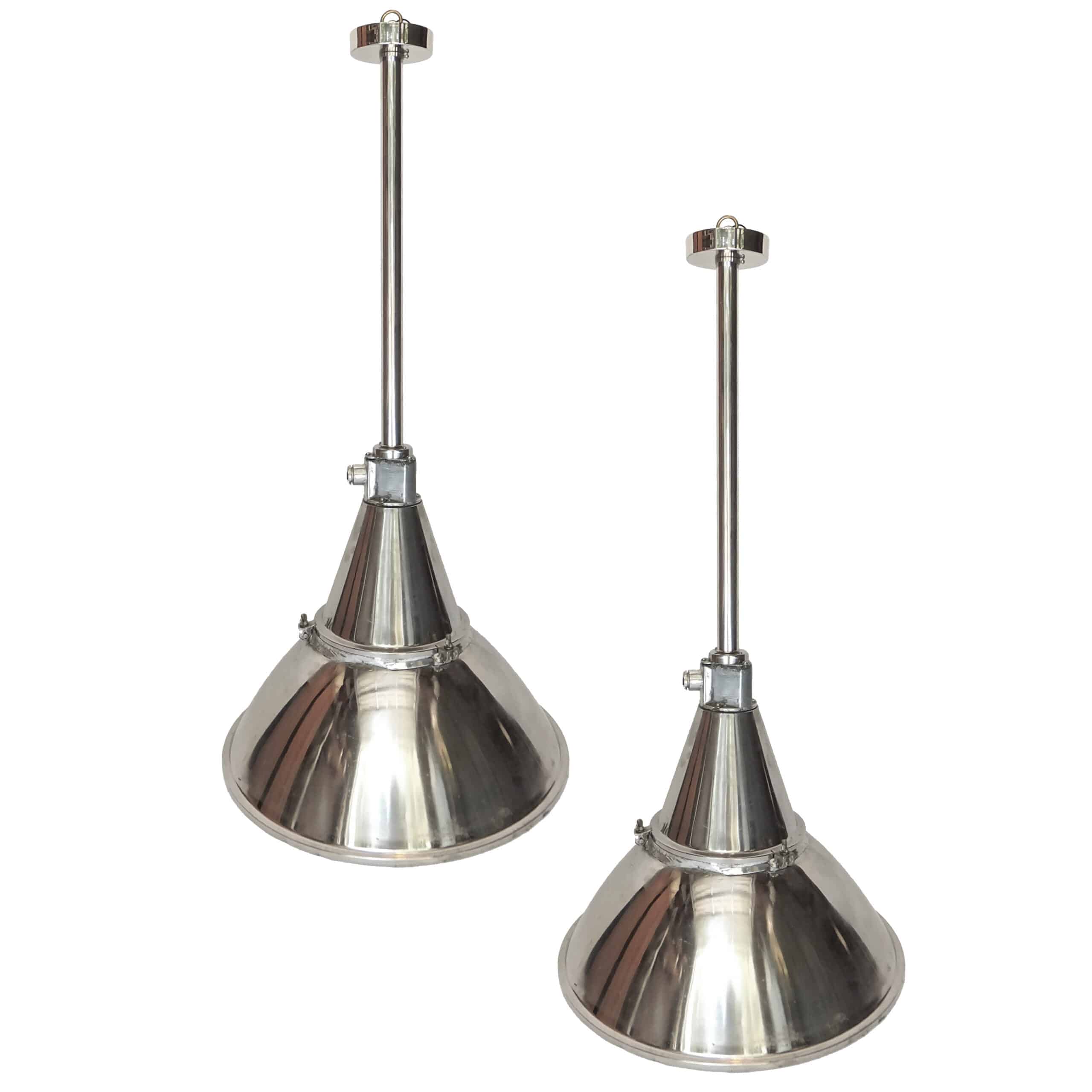 Pair of Late 19th Century Chrome Ship Lights, Rewired with Aluminum Posts and Canopy