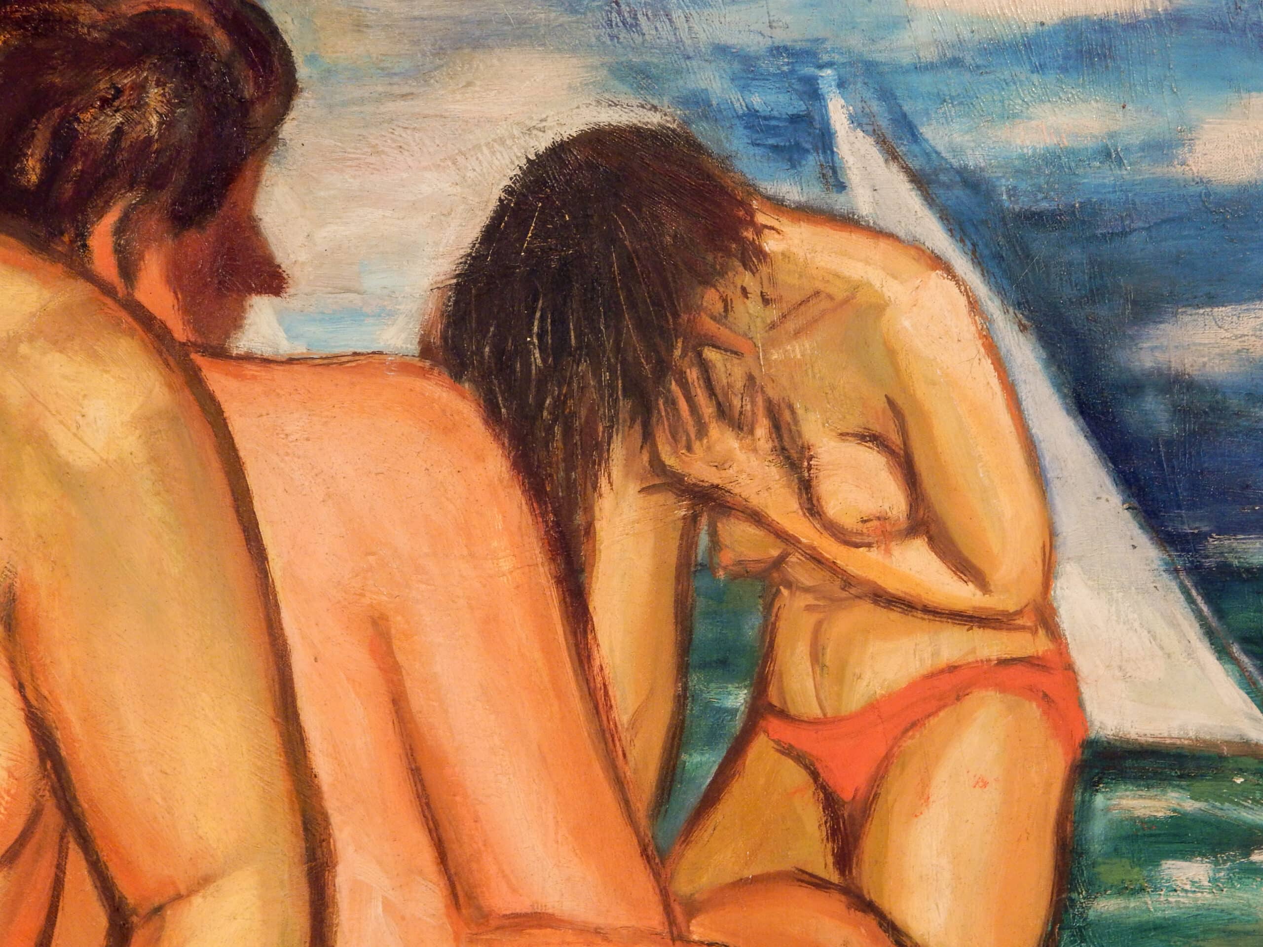 Delightful, Crowded Beach Scene by French Illustrator, Painter & Designer, Robert Bonfils (1886-1972)