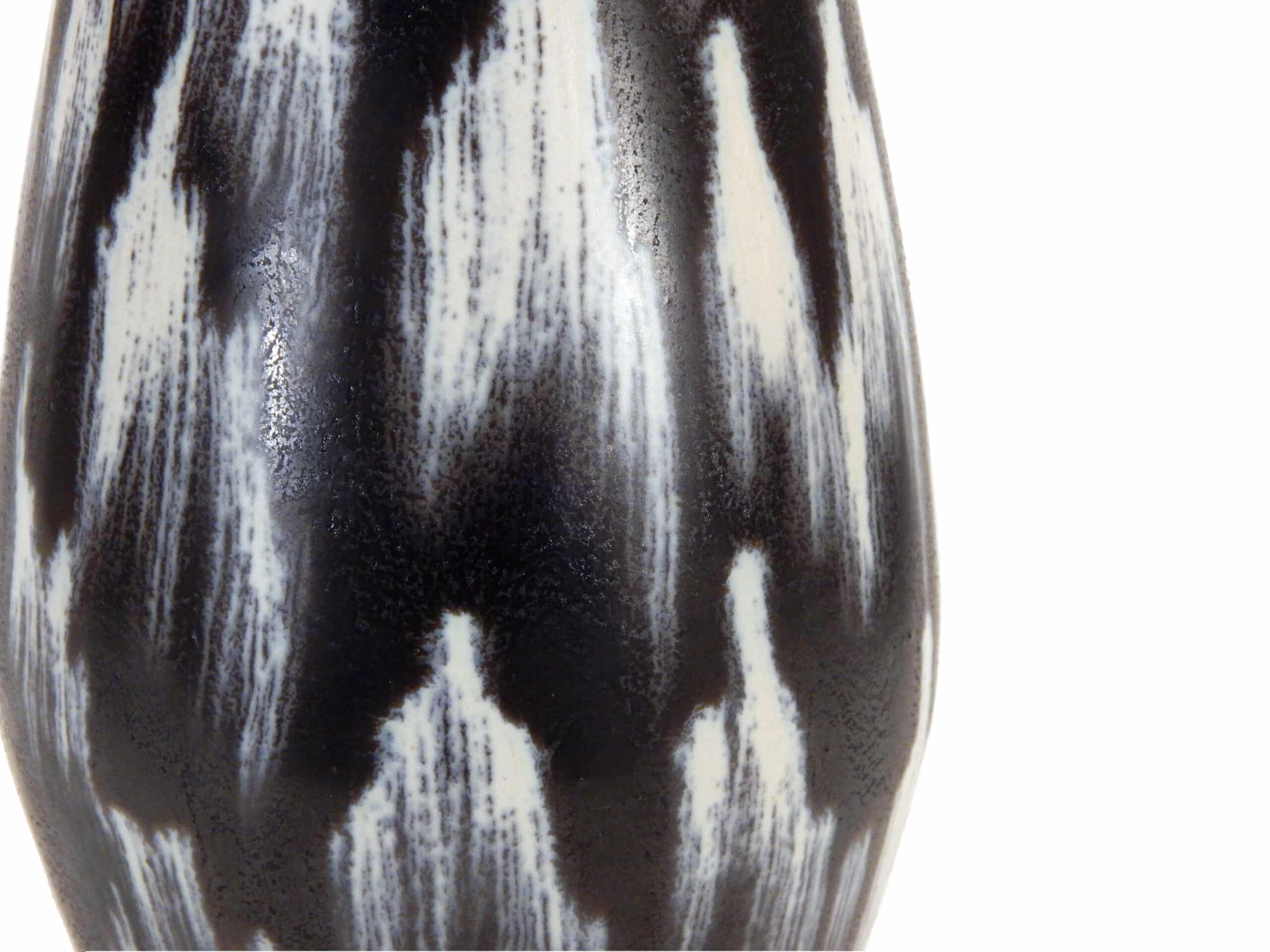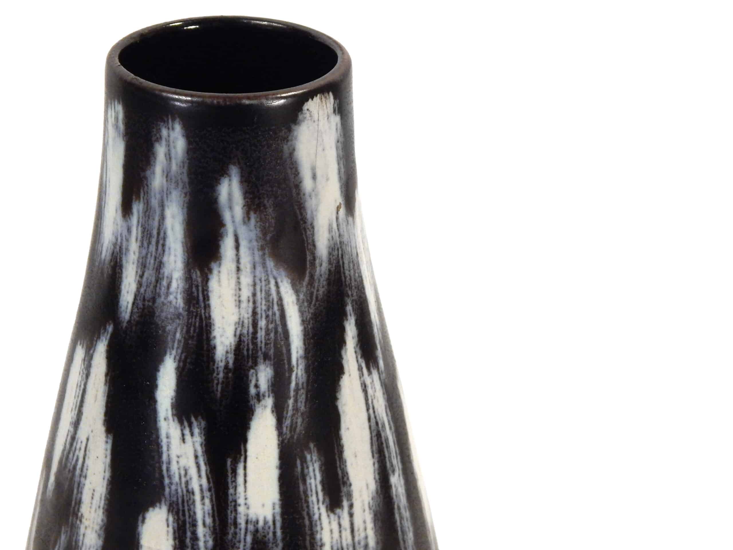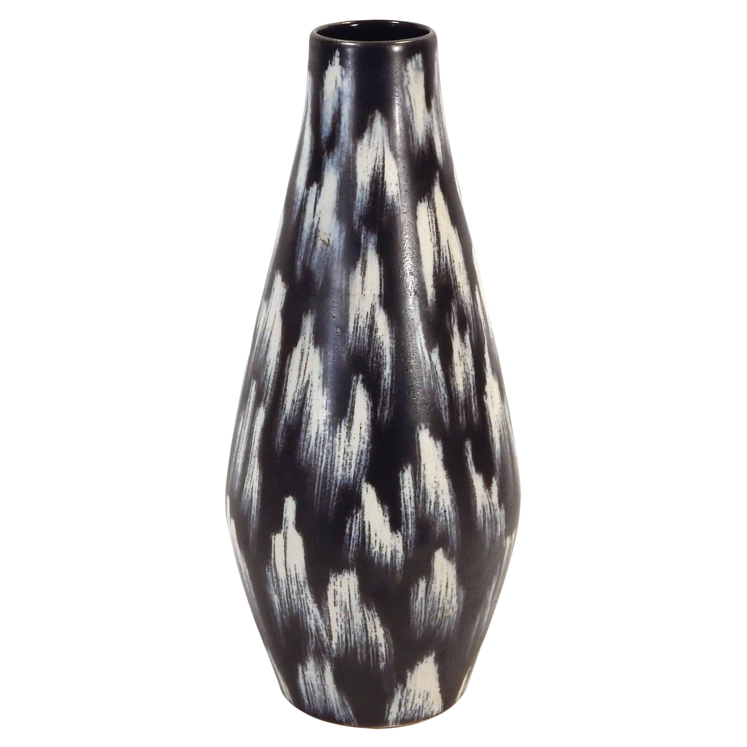 Mid Century Black Ceramic Vase with Brushstroke-Like Pattern in Whites & Blues by Georgenthal Keramik