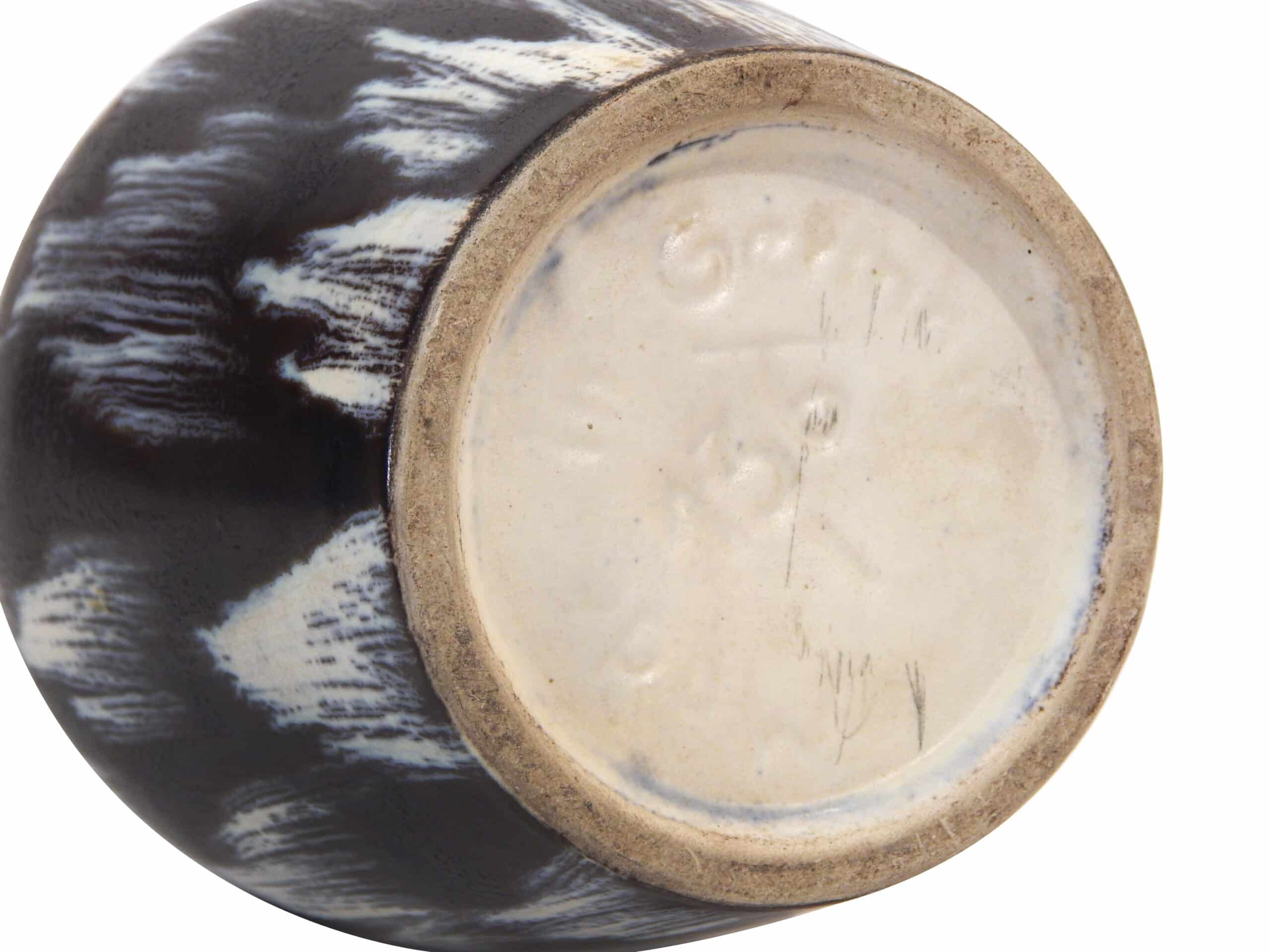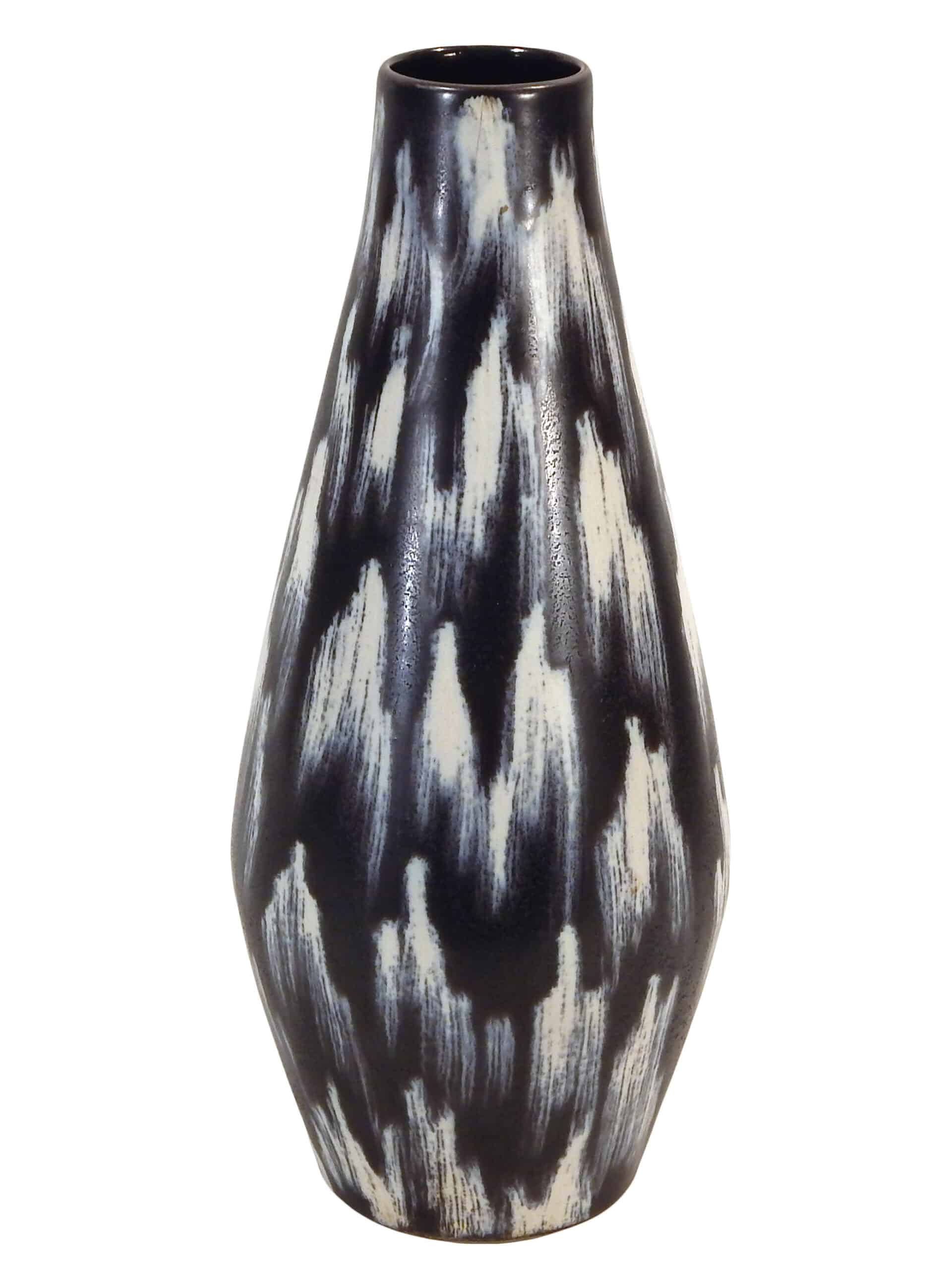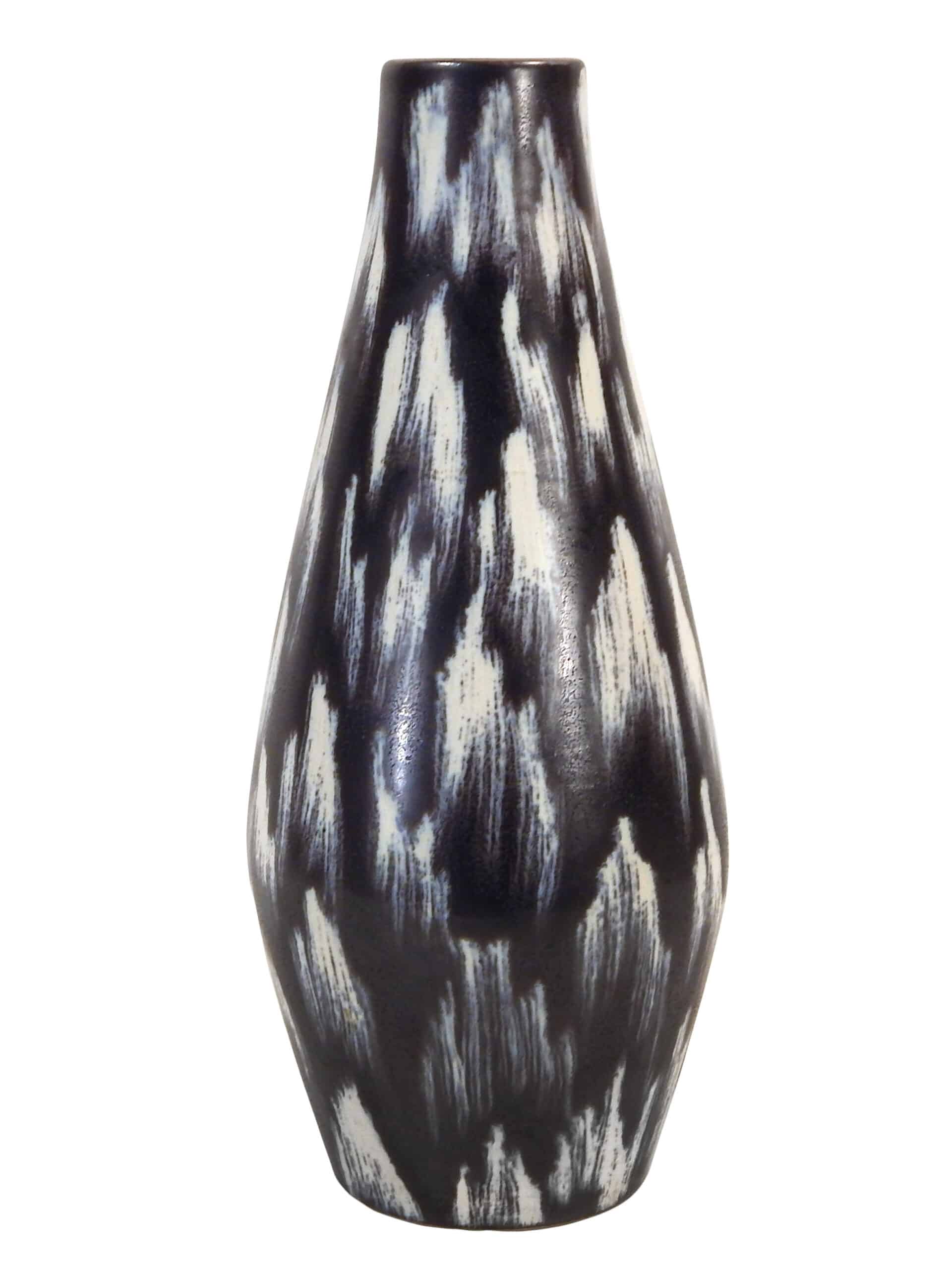 Mid Century Black Ceramic Vase with Brushstroke-Like Pattern in Whites & Blues by Georgenthal Keramik
