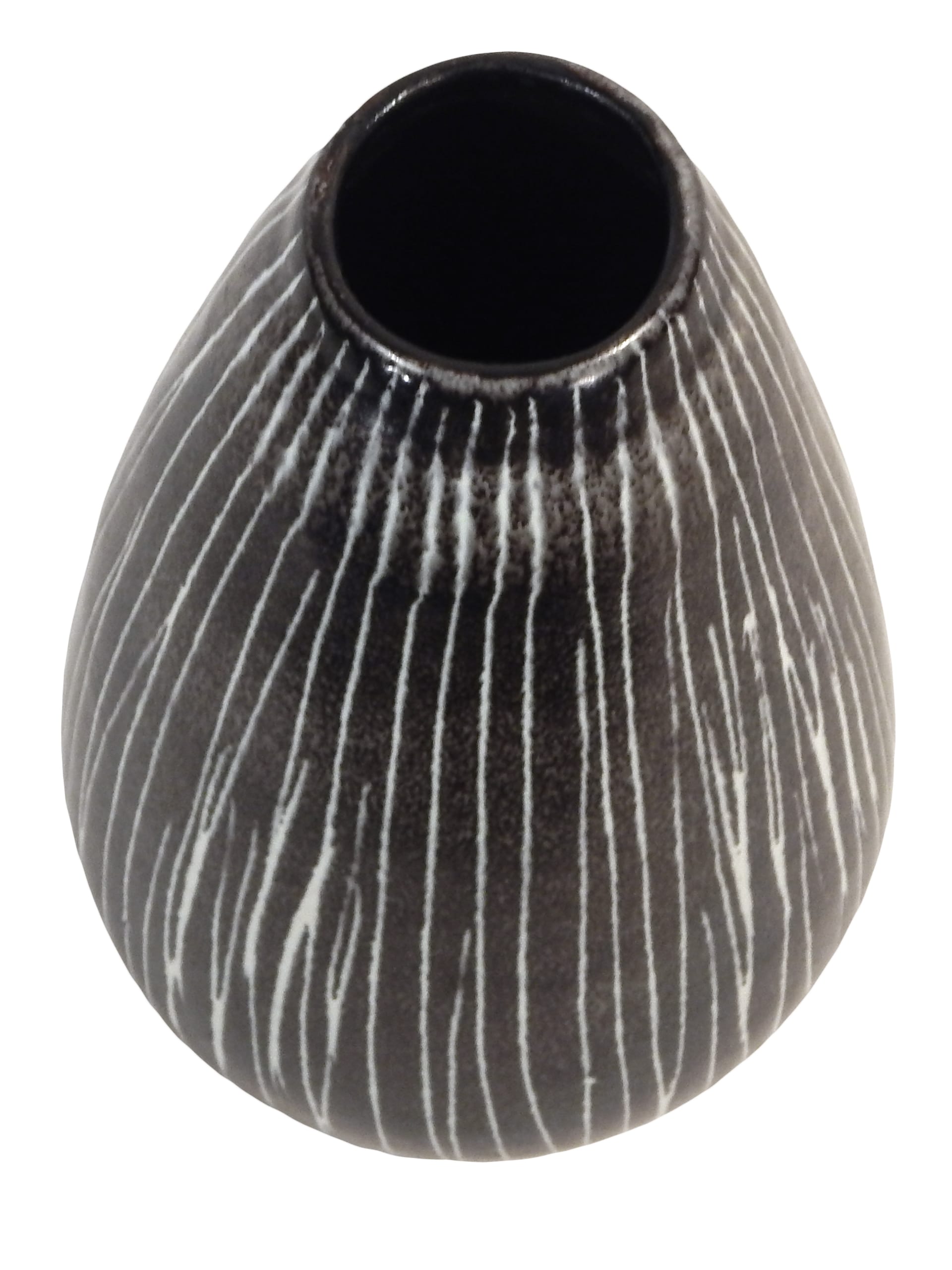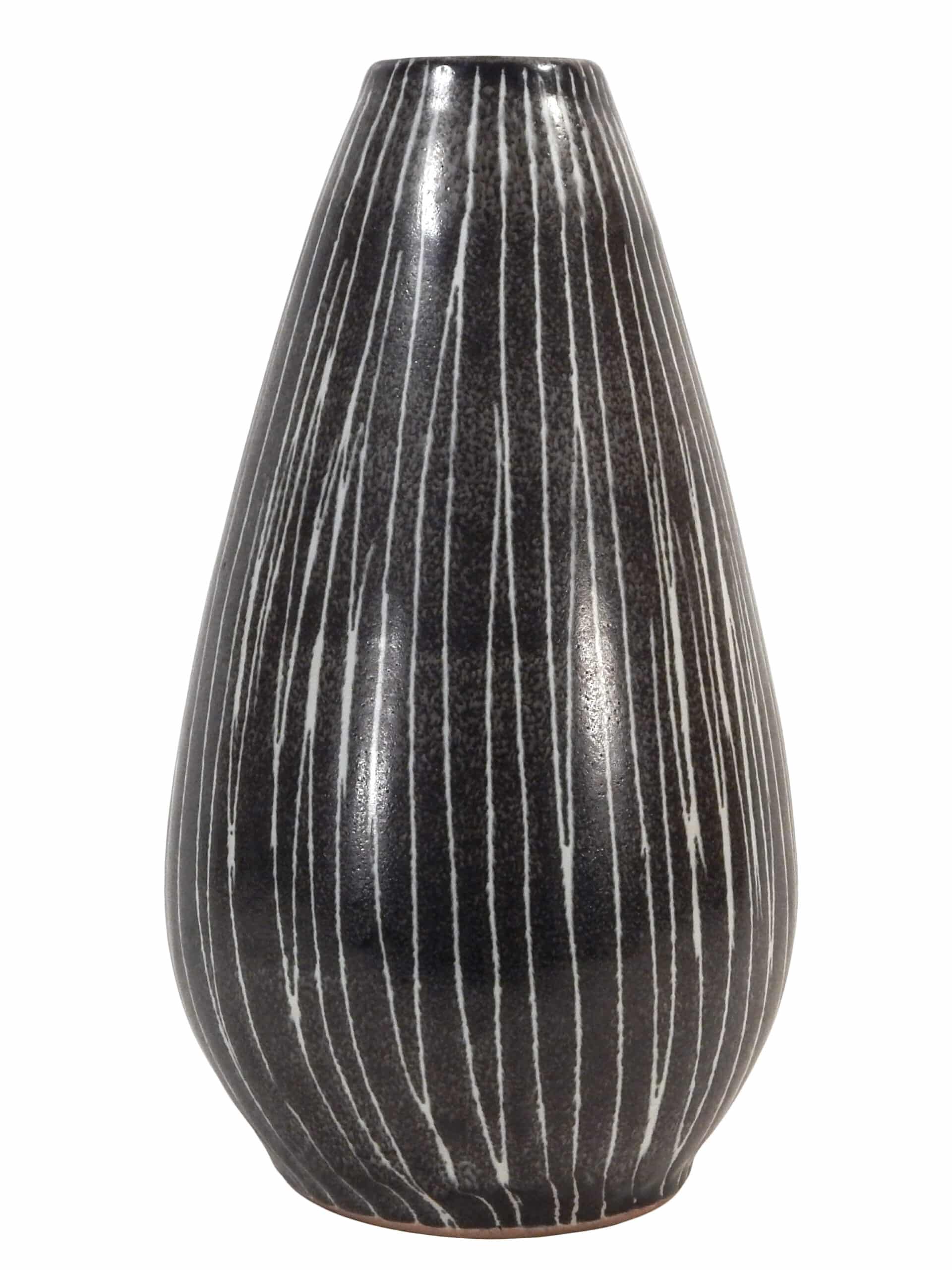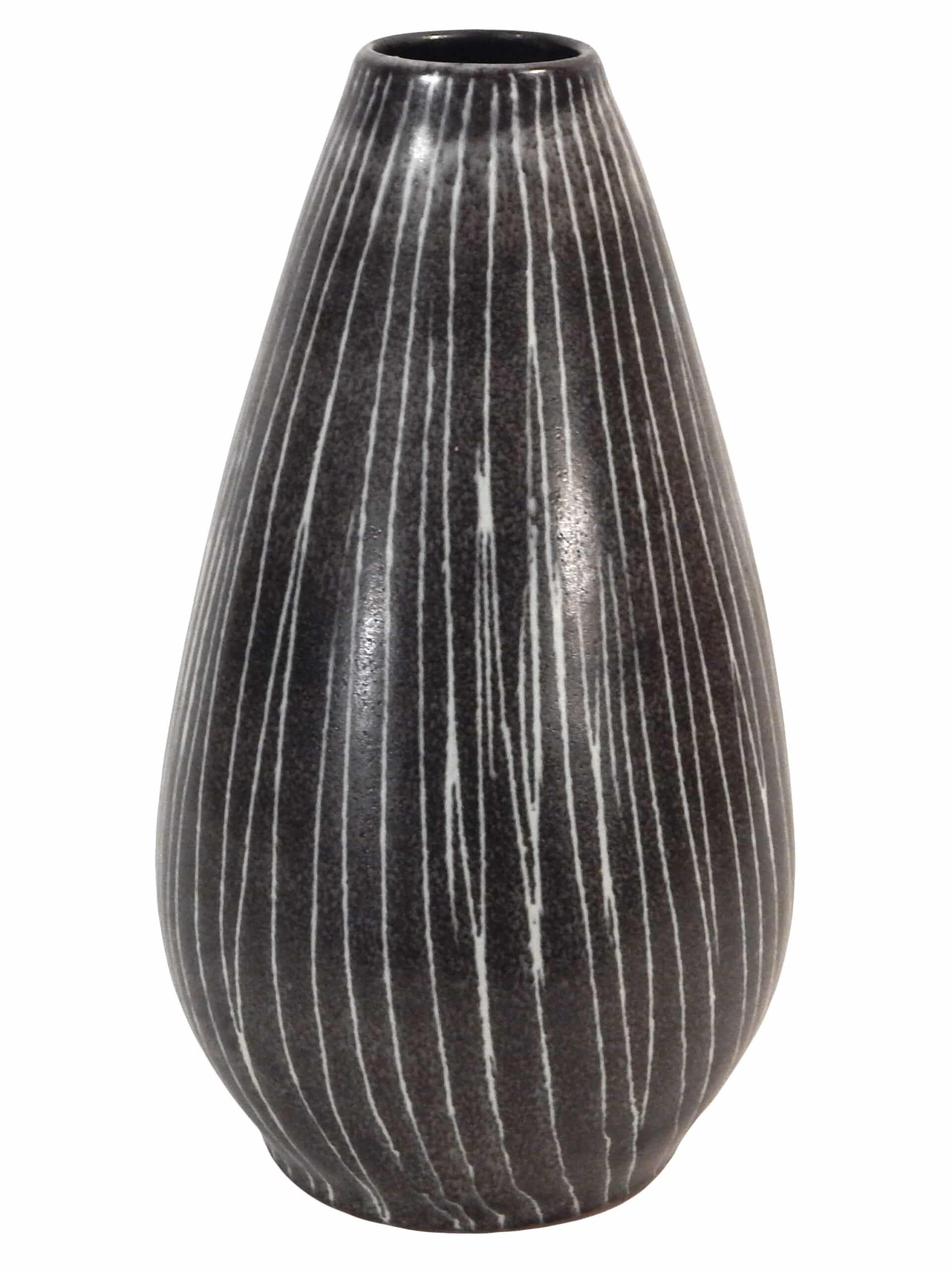 Large, Black, Mid Century Georgenthal Ceramic Vase with Painted White Linework