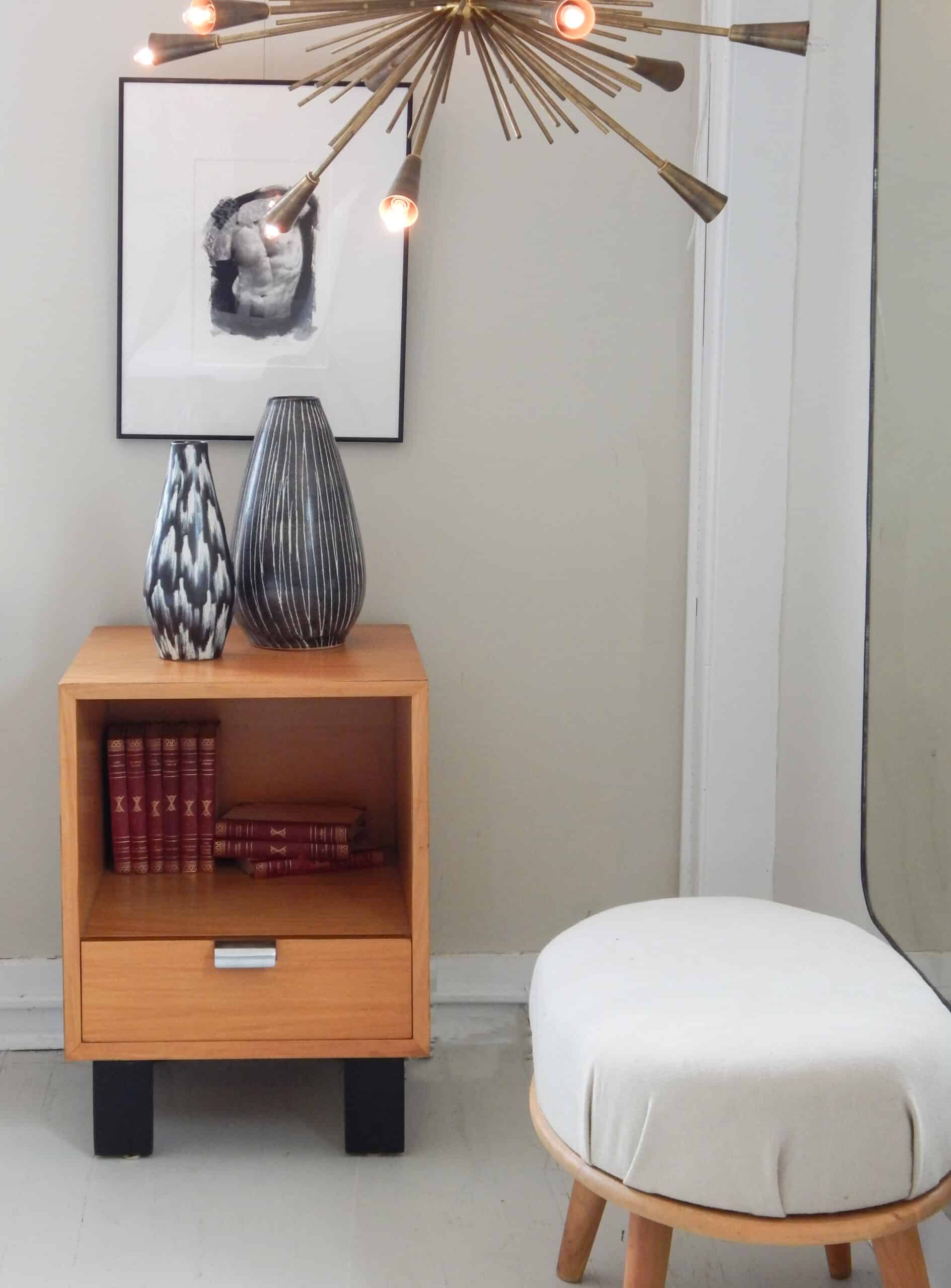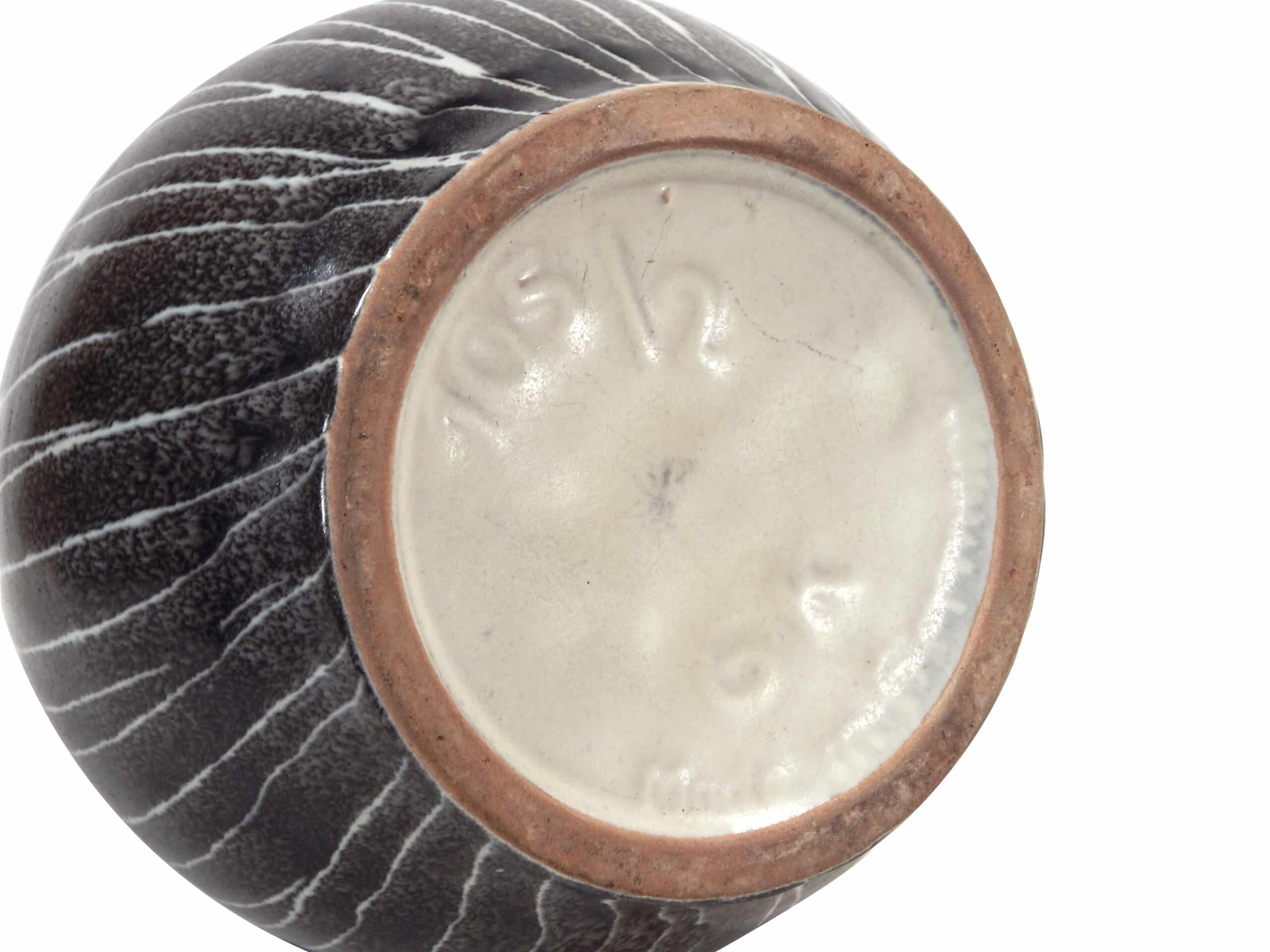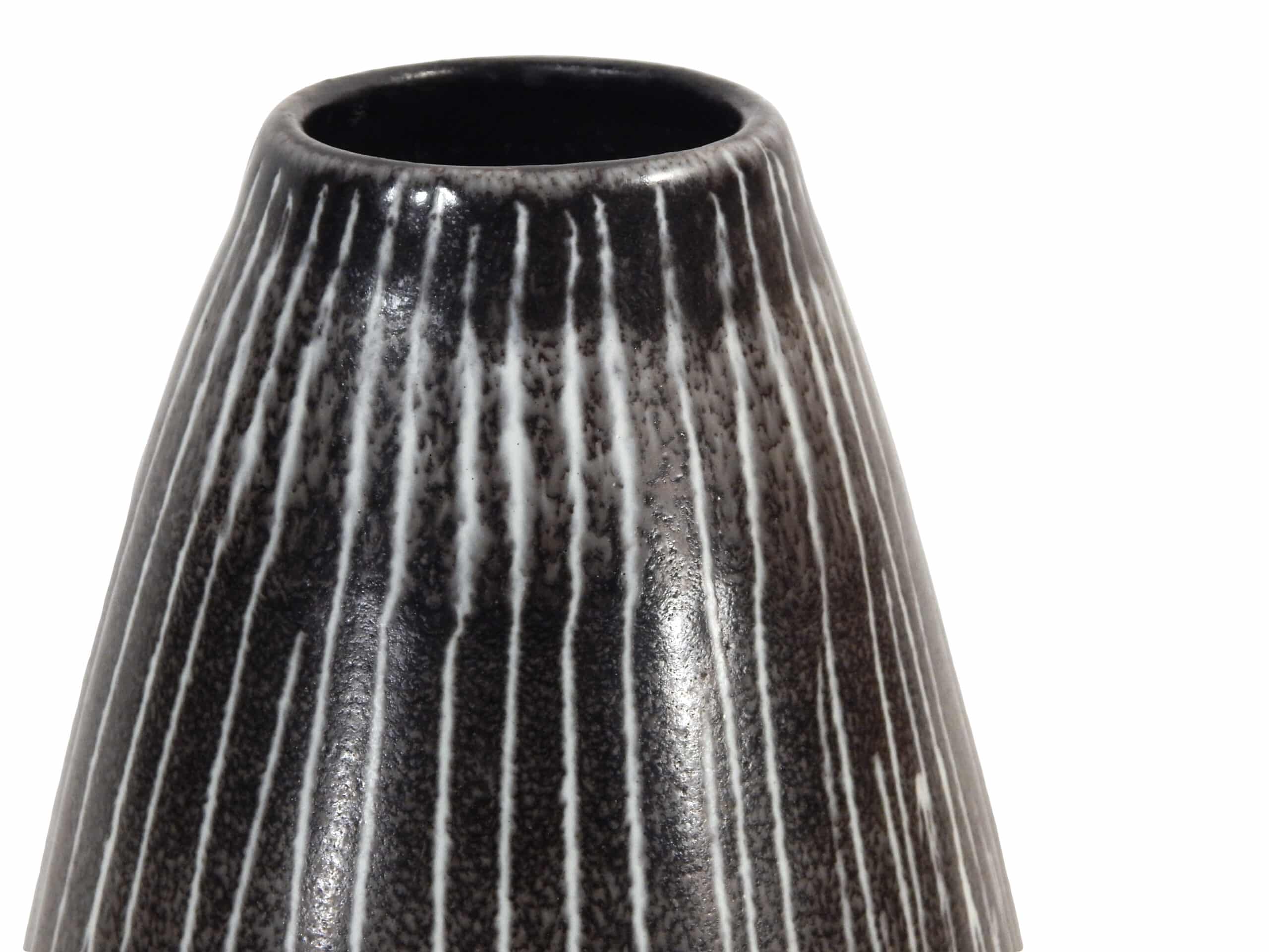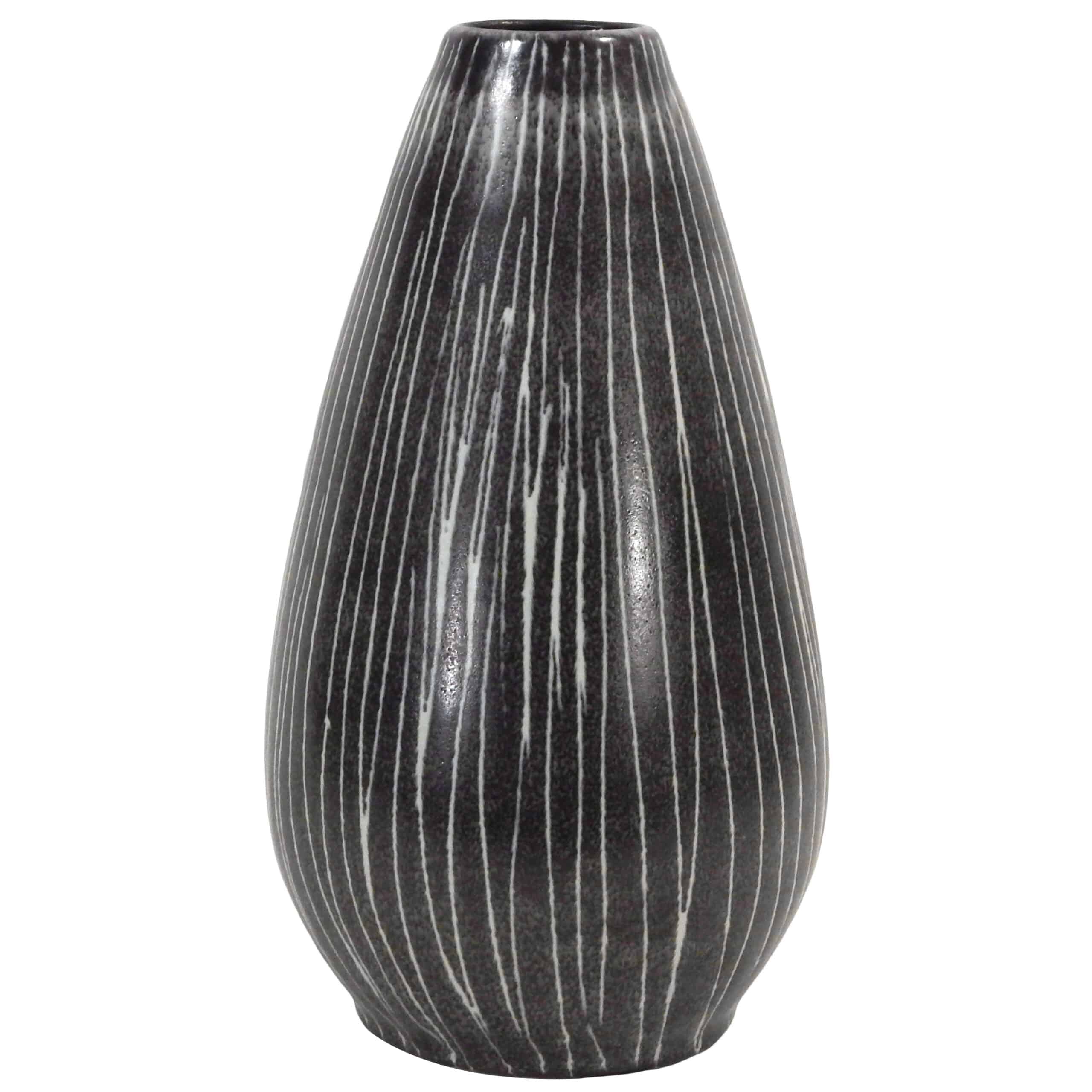 Large, Black, Mid Century Georgenthal Ceramic Vase with Painted White Linework