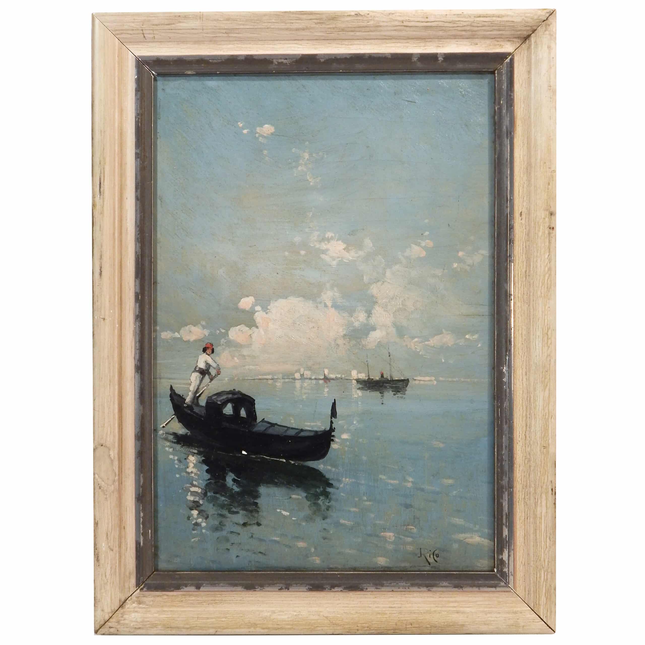 Small, Mid Century Painting Titled ‘Gondolier Near Venice’ by Martin Rico Y Ortega (1833-1908)