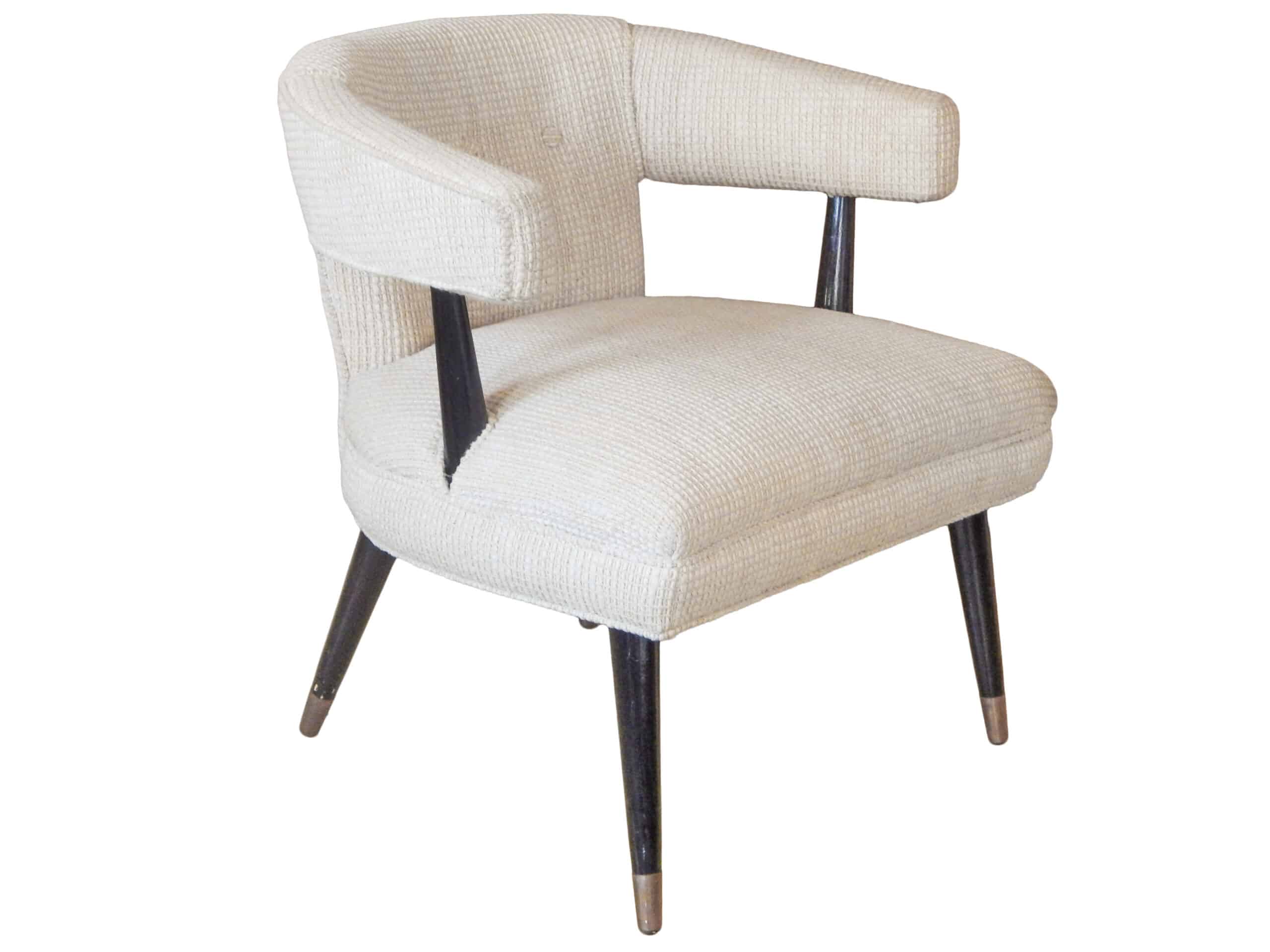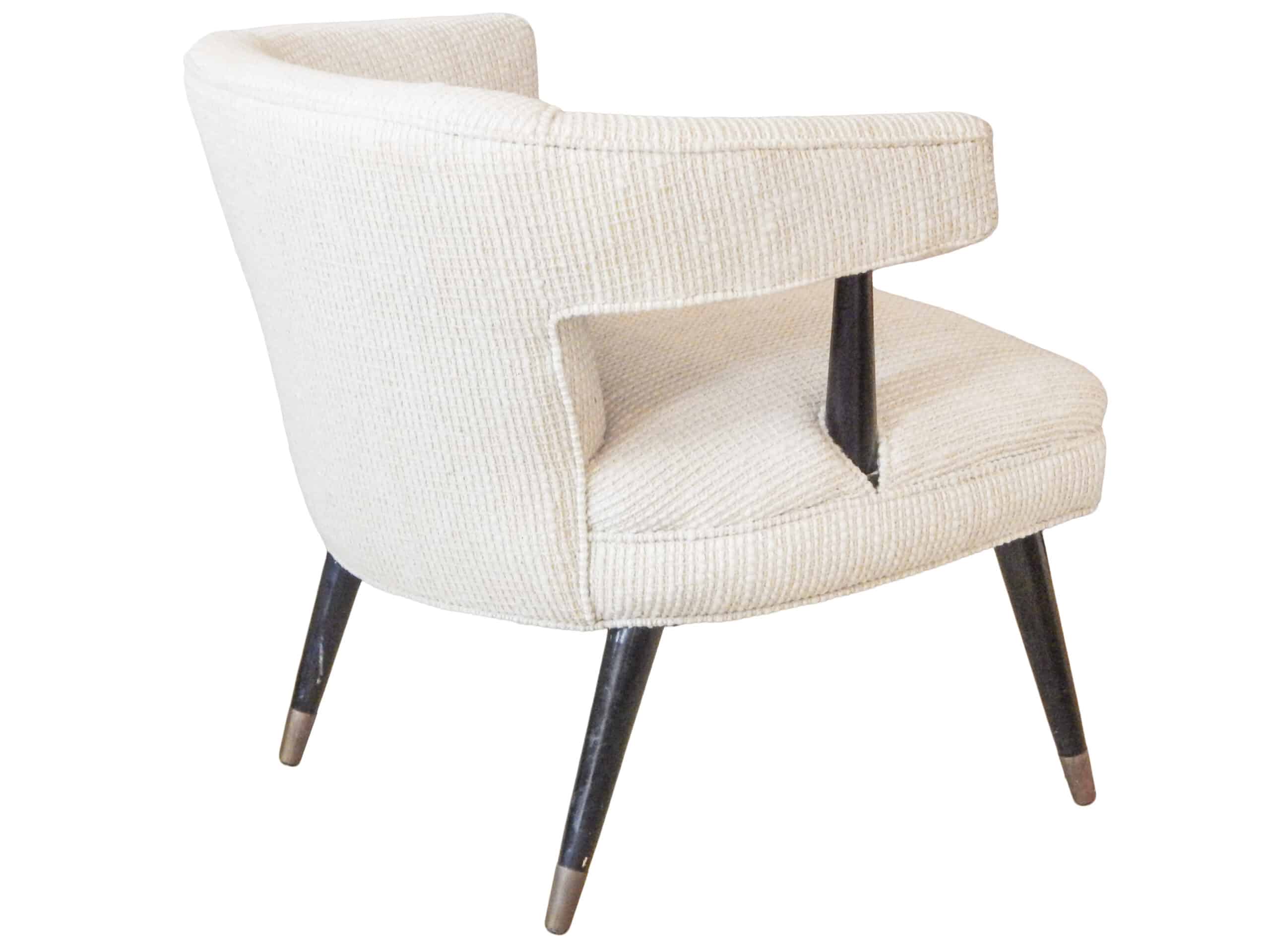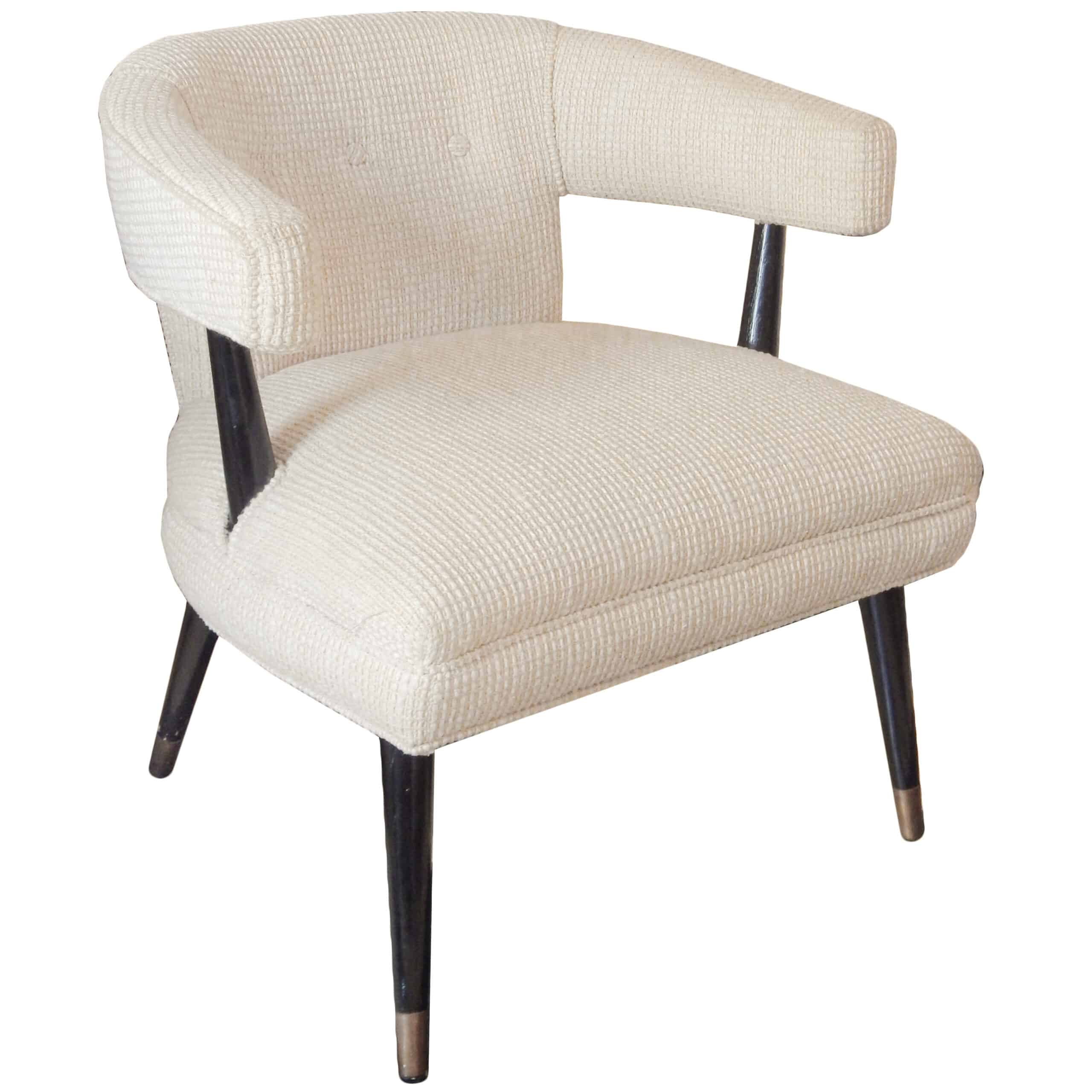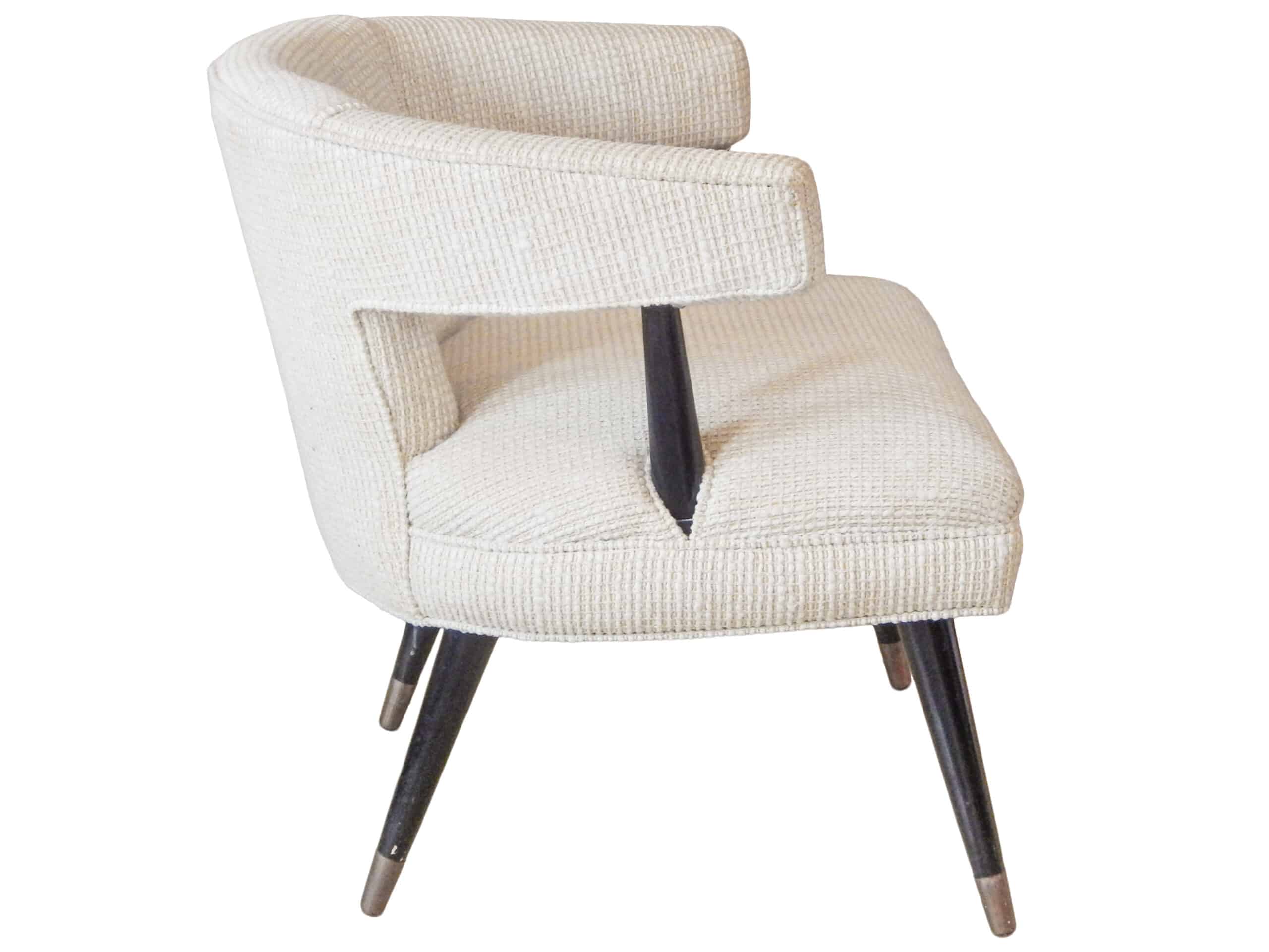 Modern Barrel Back Lounge Chair with Original Fabric and Black Painted Legs