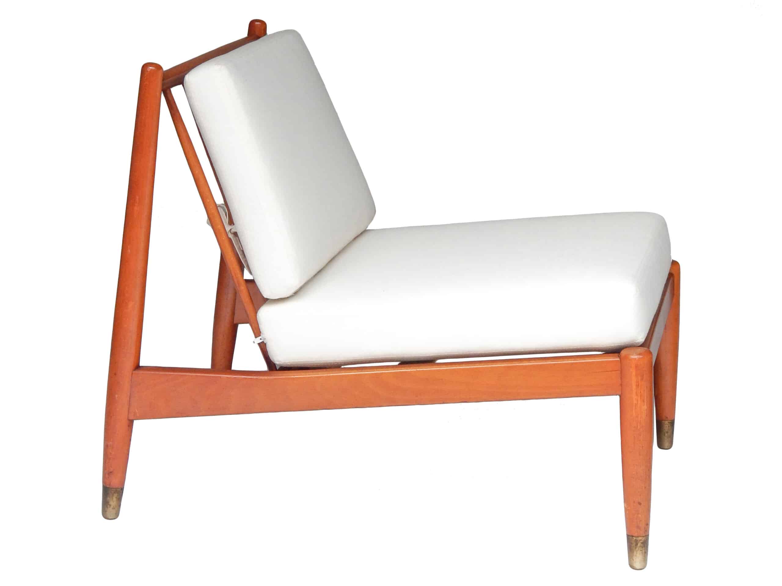 Pair of Mid Century, Danish Slipper Chairs with Cushions Upholstered in Muslin