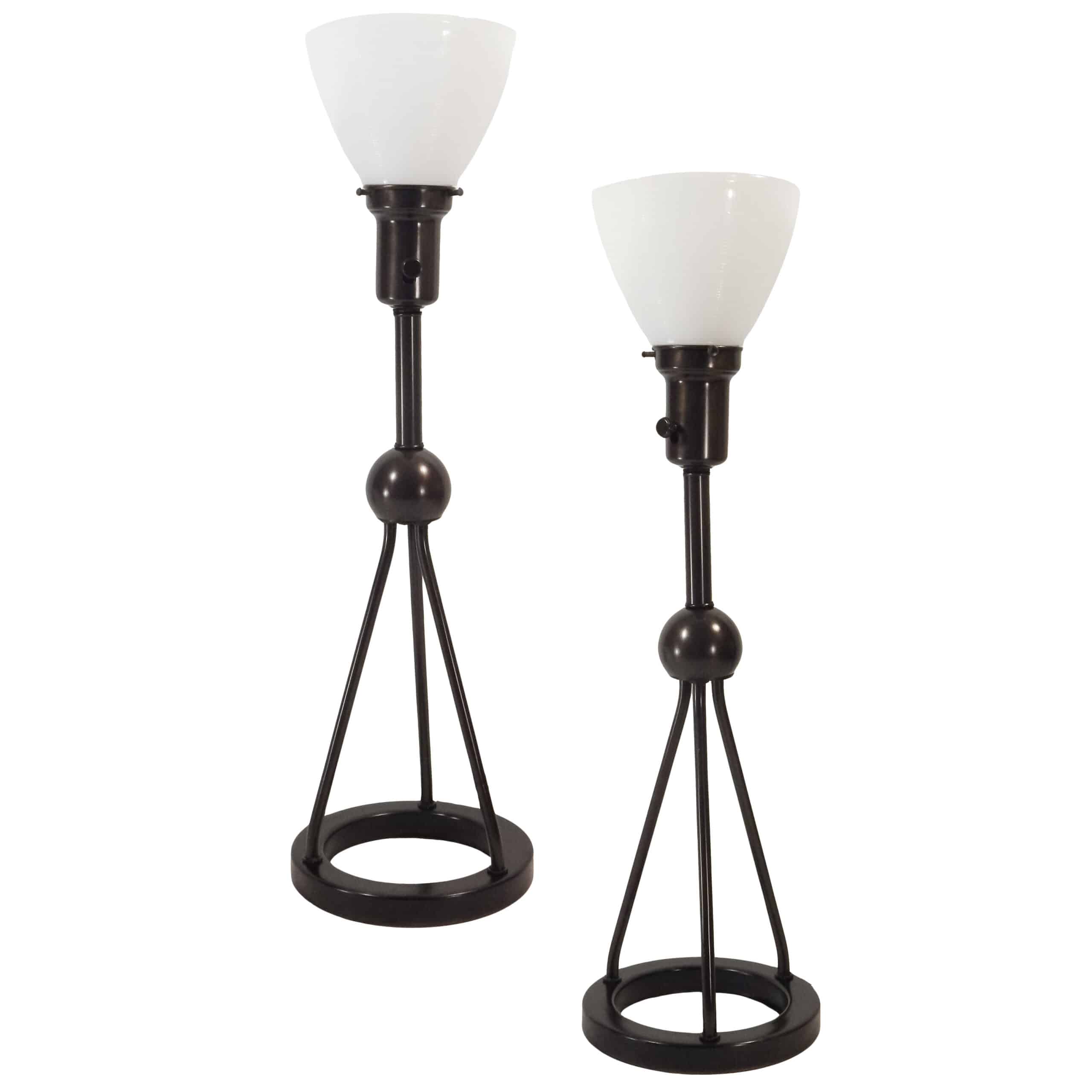 Pair of Mid Century ‘Atomic’ Dark Brass Table Lamps with Hoop Base