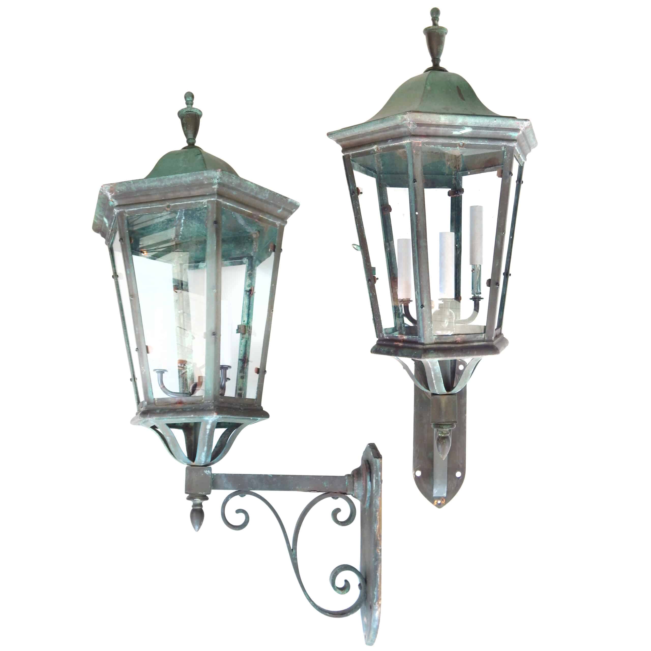 Pair of Large, Early 20th Century, Bronze Lantern Sconces