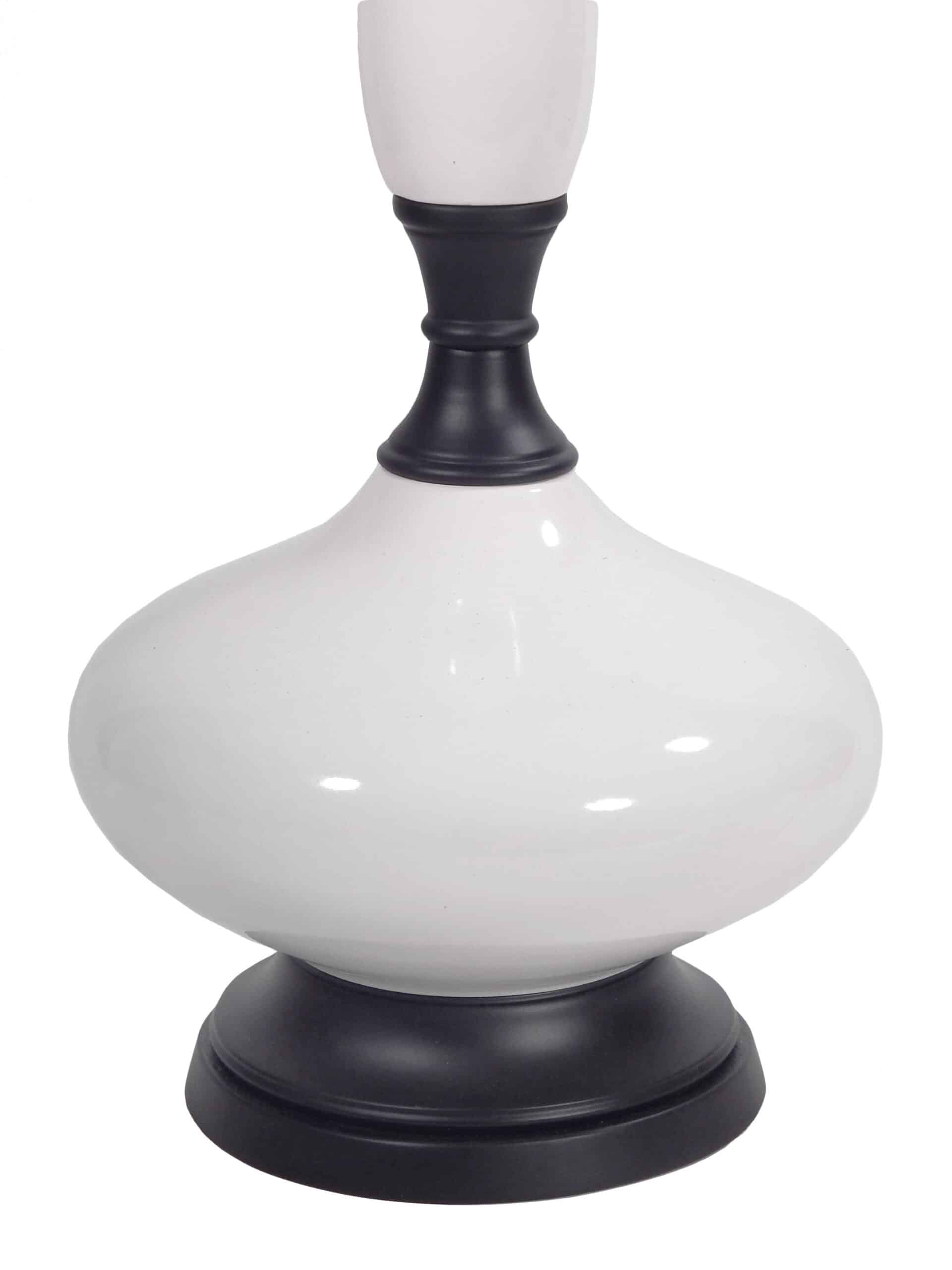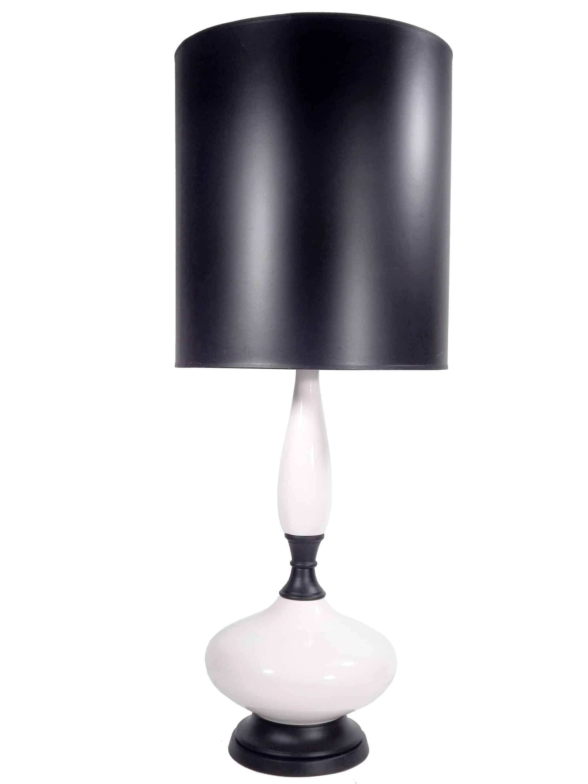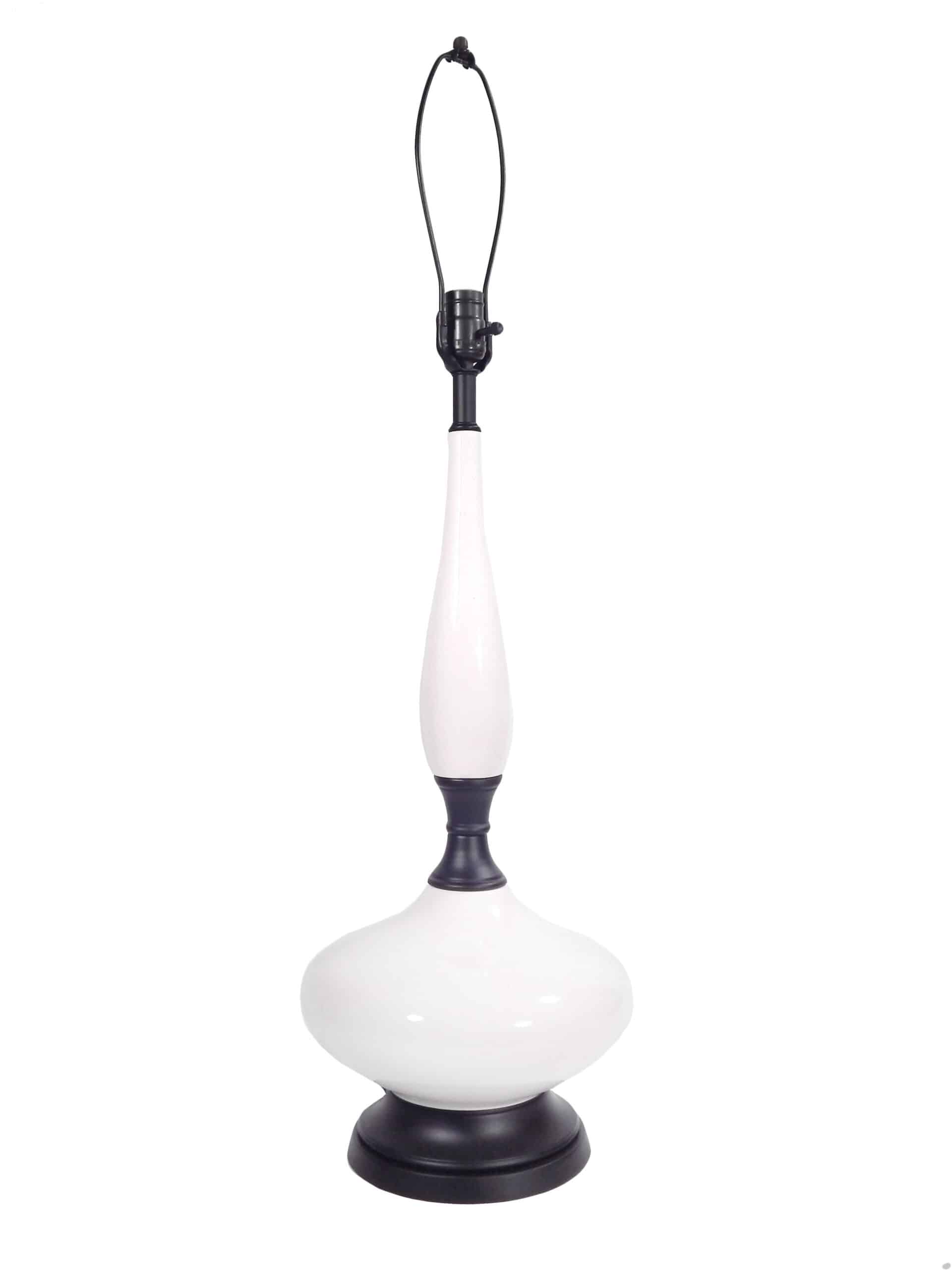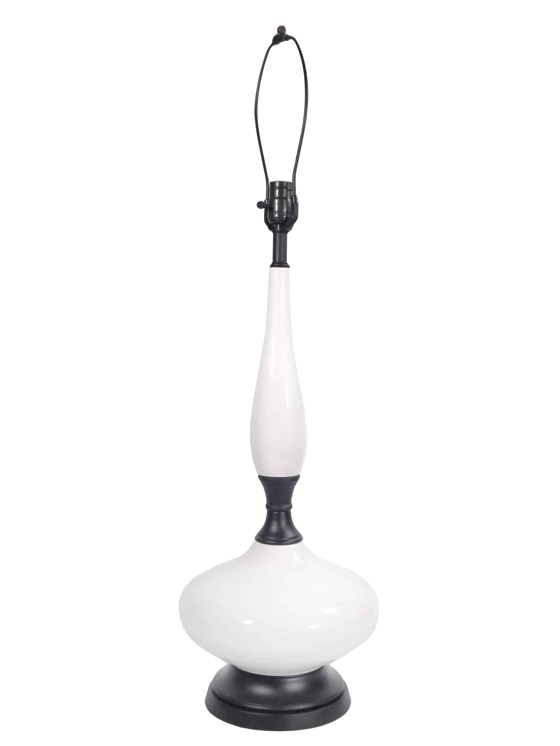 Pair of Tall, Early 20th Century White Porcelain Table Lamps with Black Bases