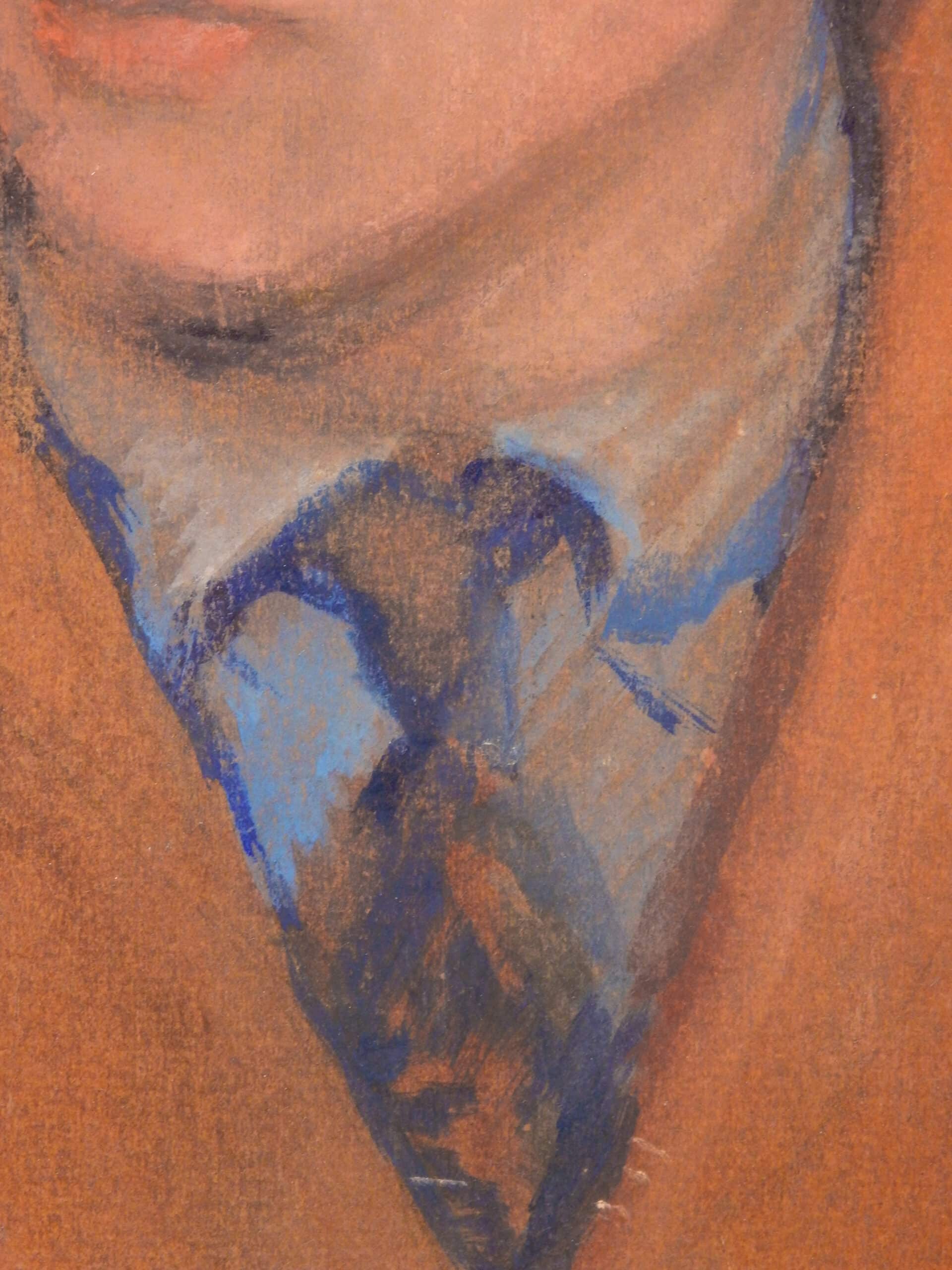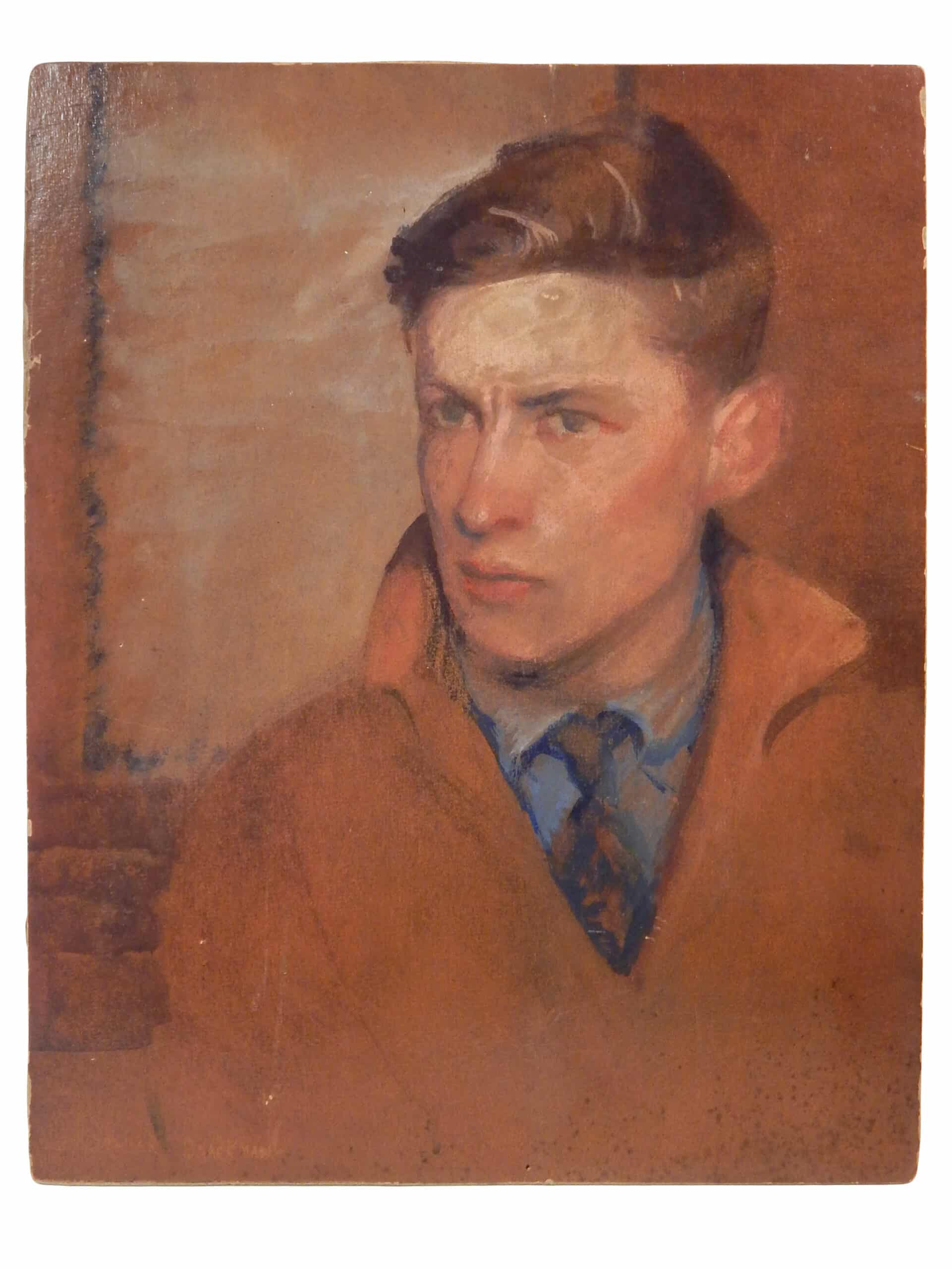 Stalized, Mid Century Portrait of a Young Man in a Blue Shirt by Robert Brackman