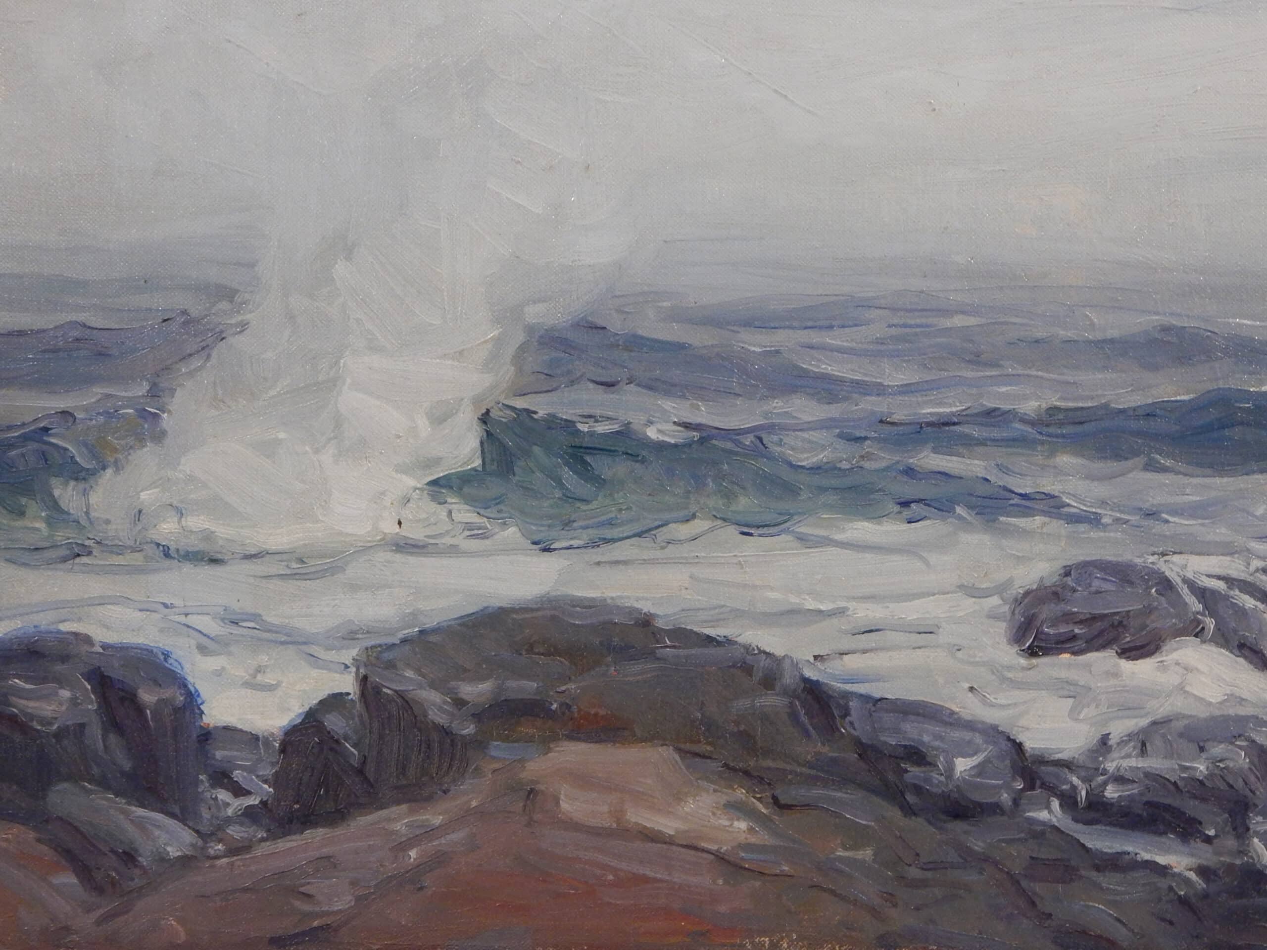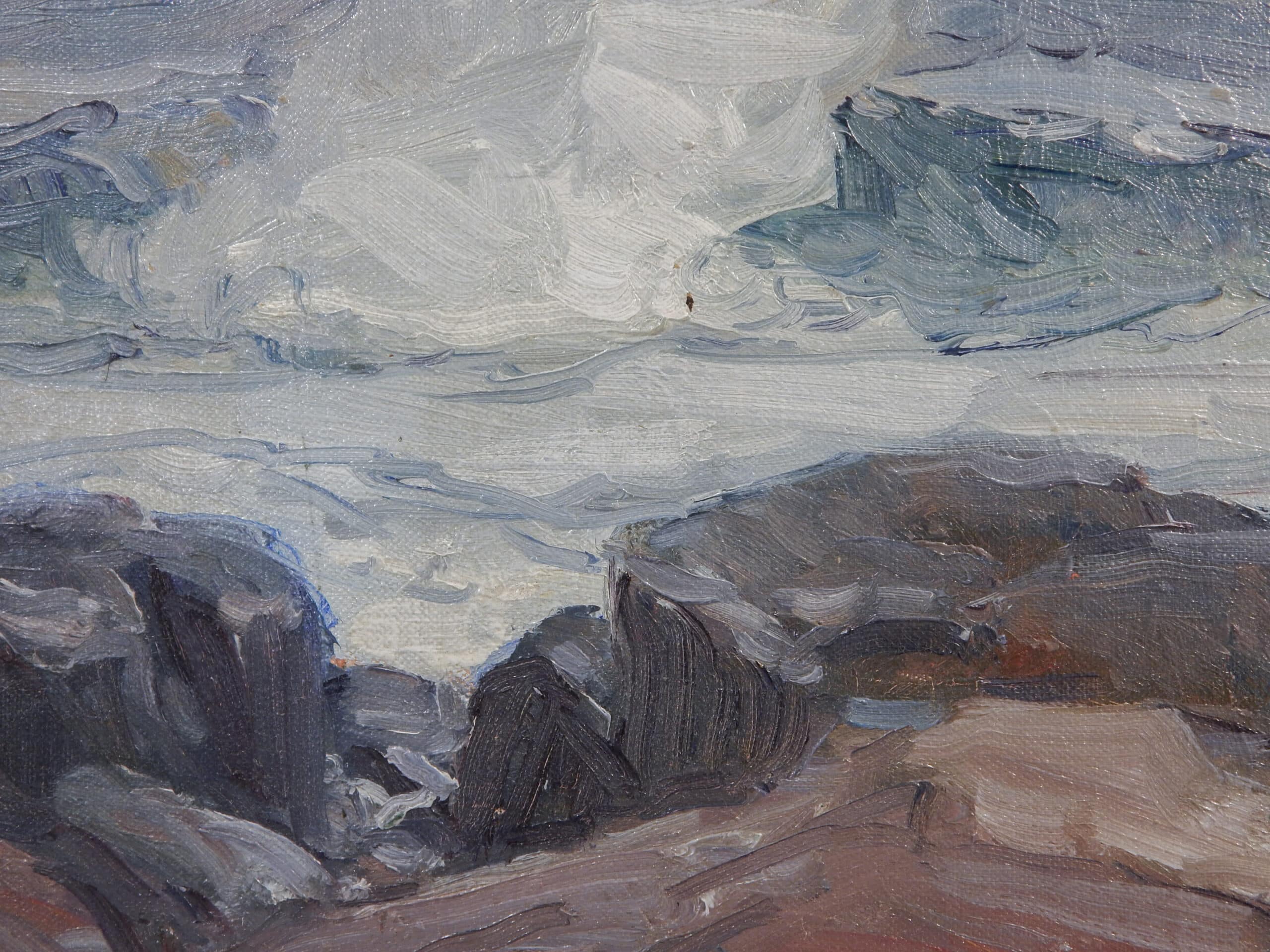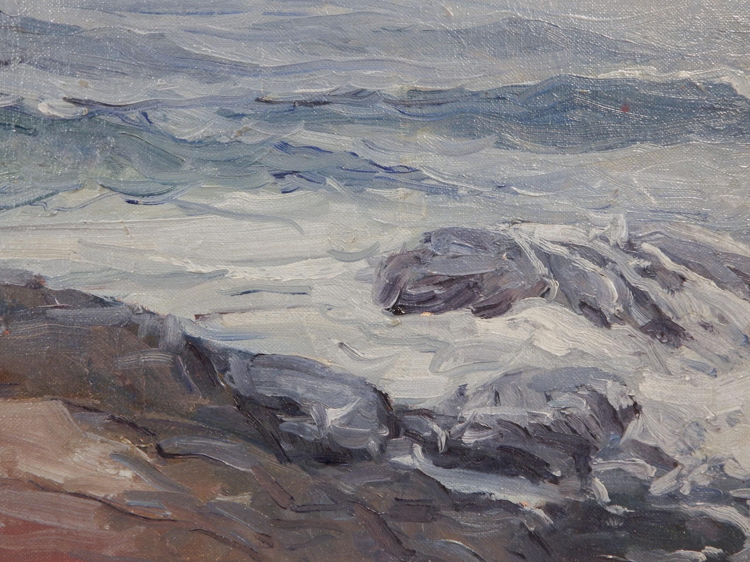 Beautifully Painted, Late 19th Century Seascape with Rocky Shore Framed in Gold