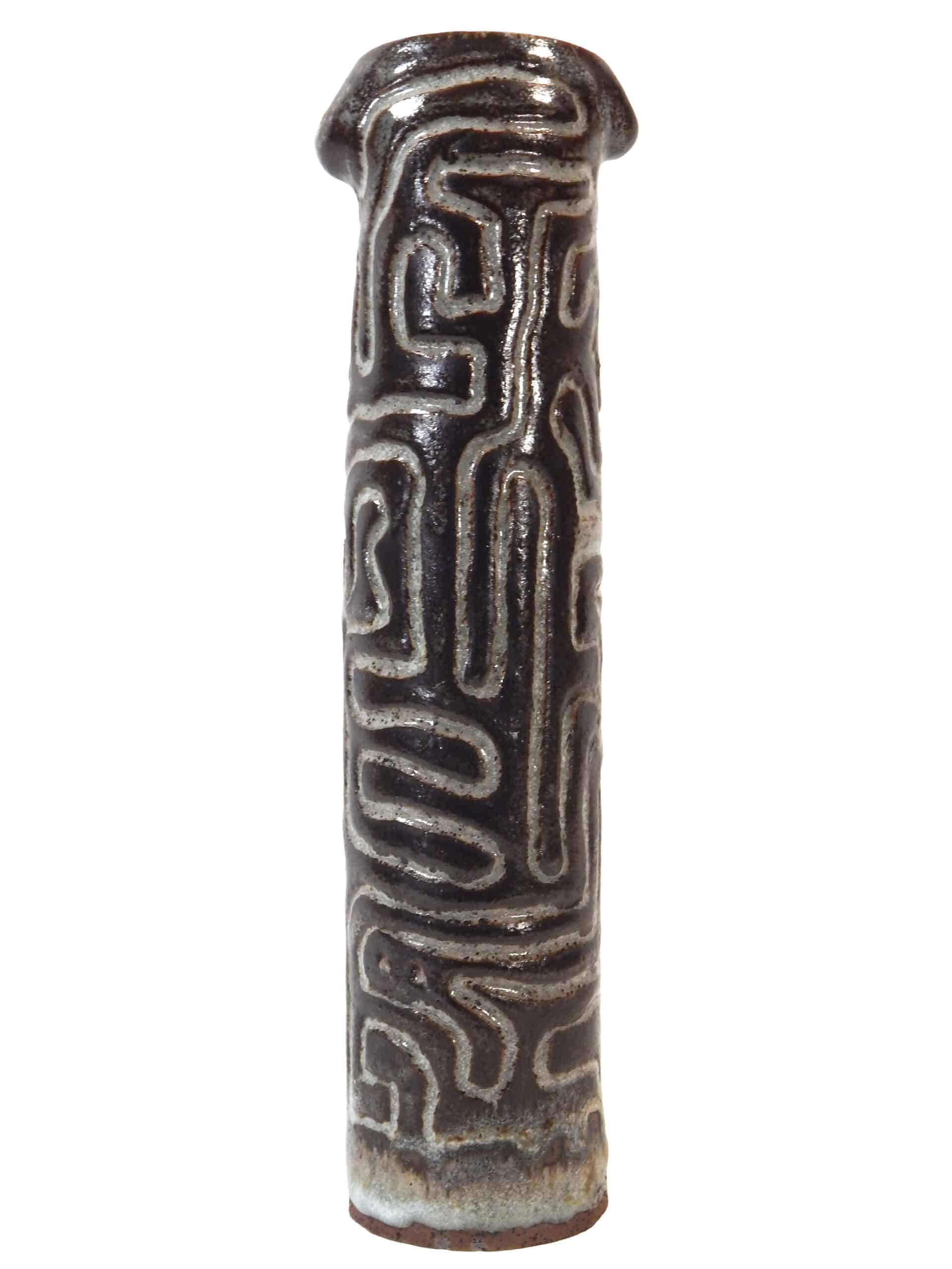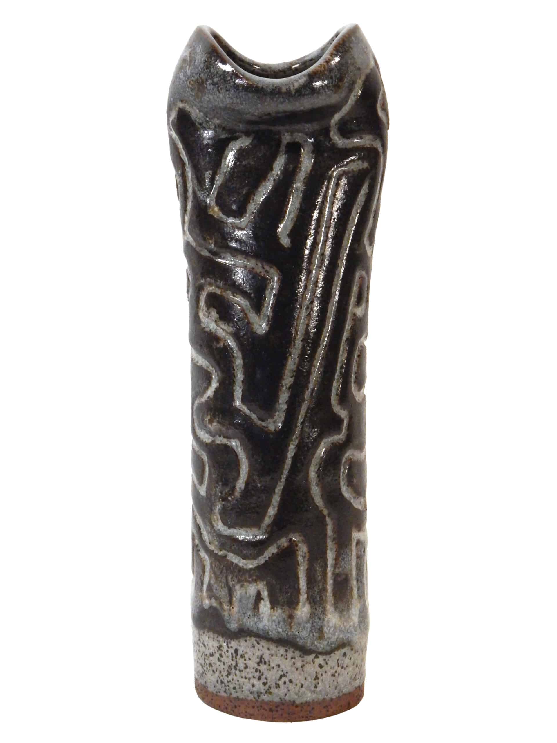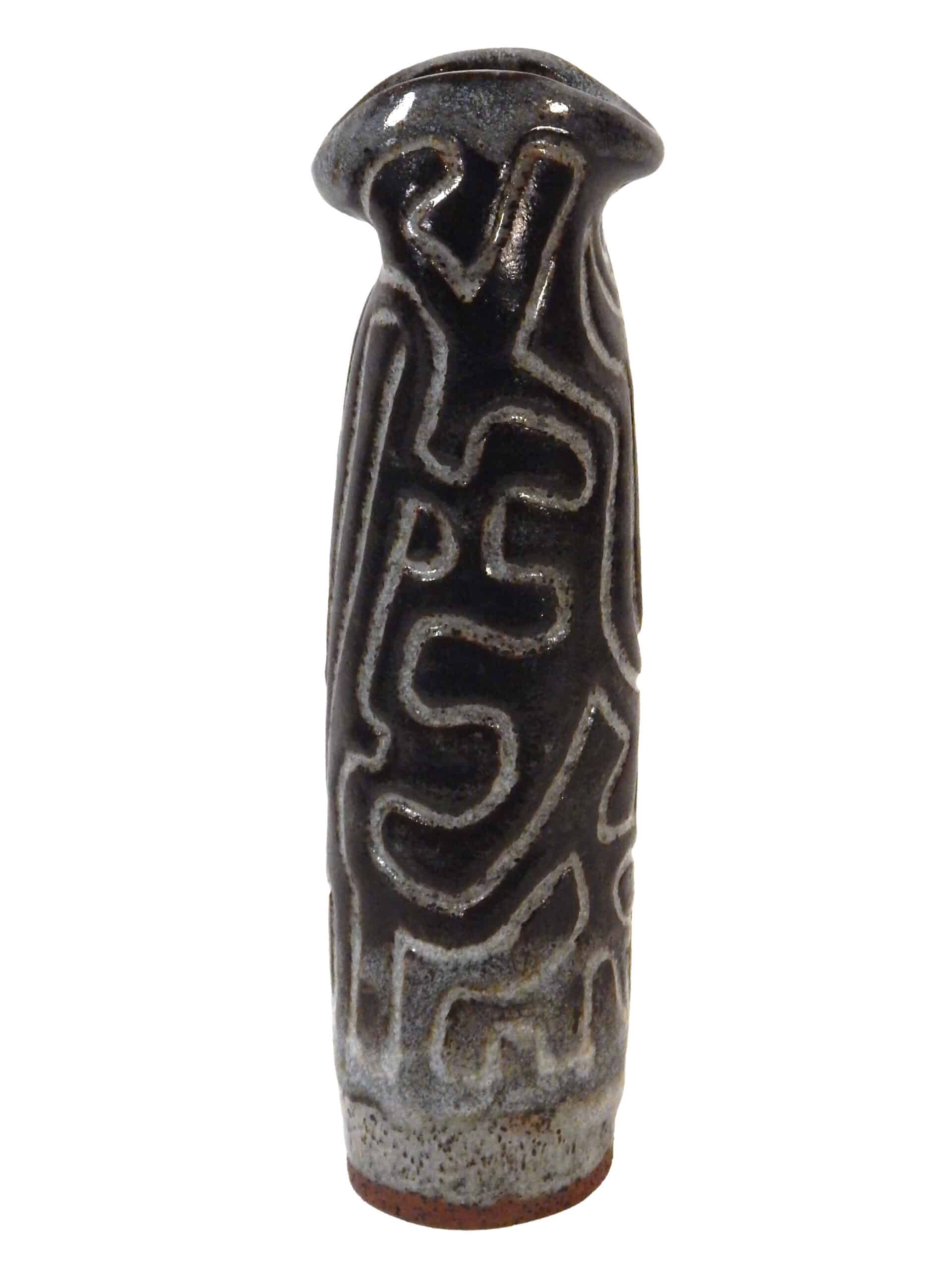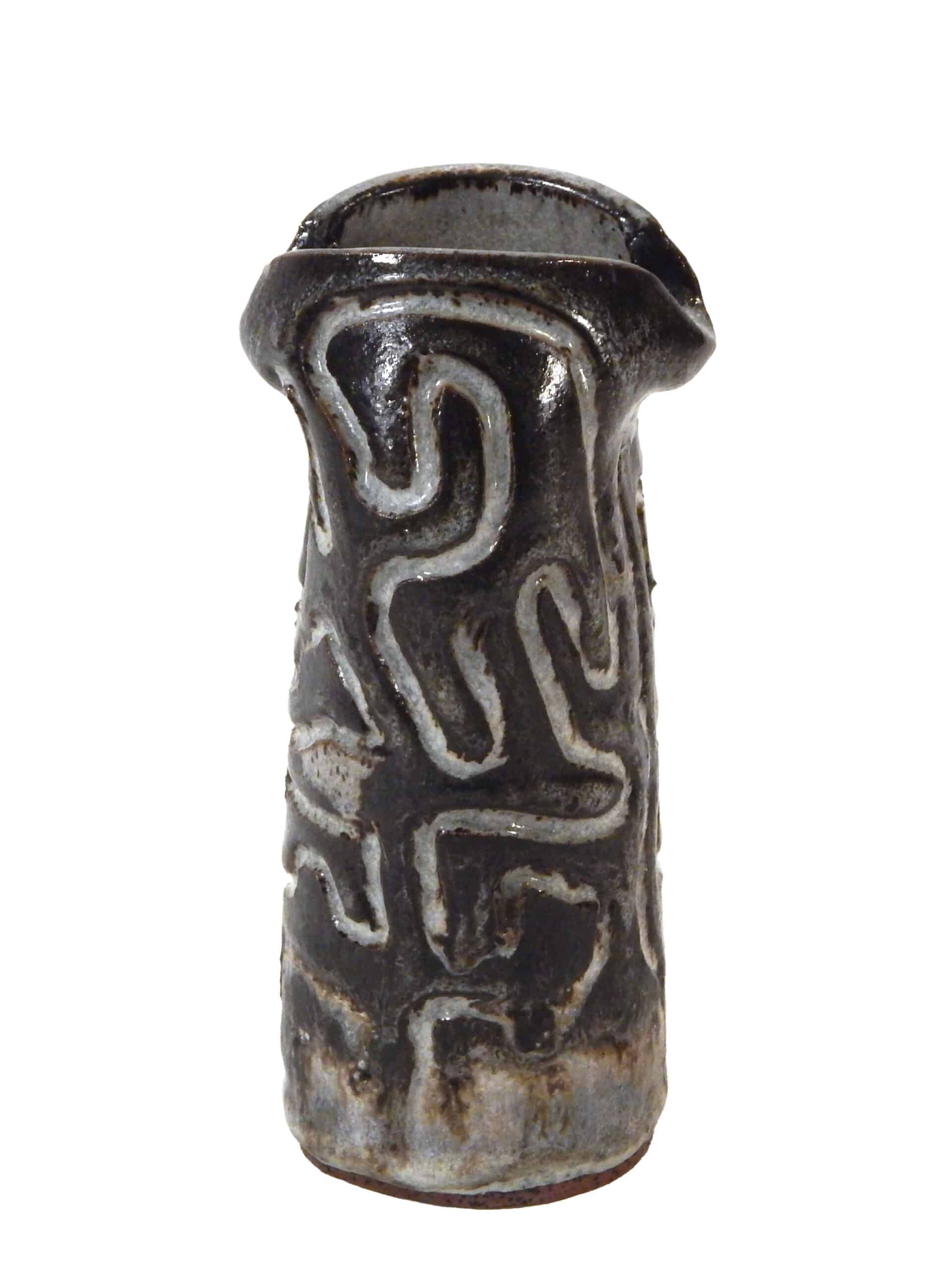 Three Mid Century Studio Vases, In Shades Of Gray with Etched, Laberenth-Like Linework by Sheldon Carey (1911-2000)