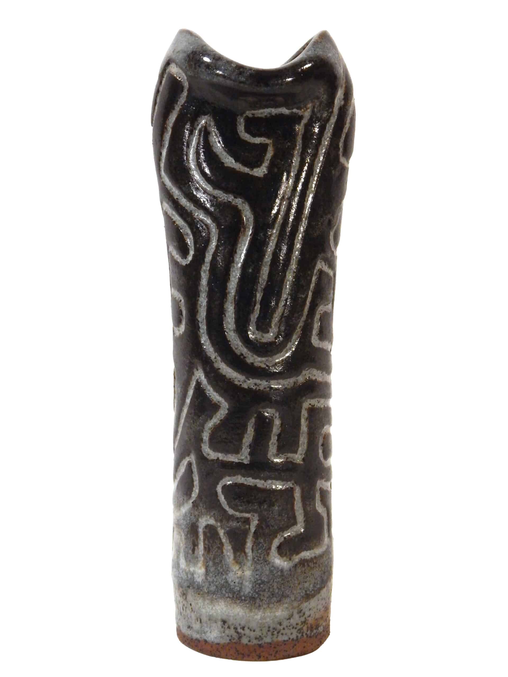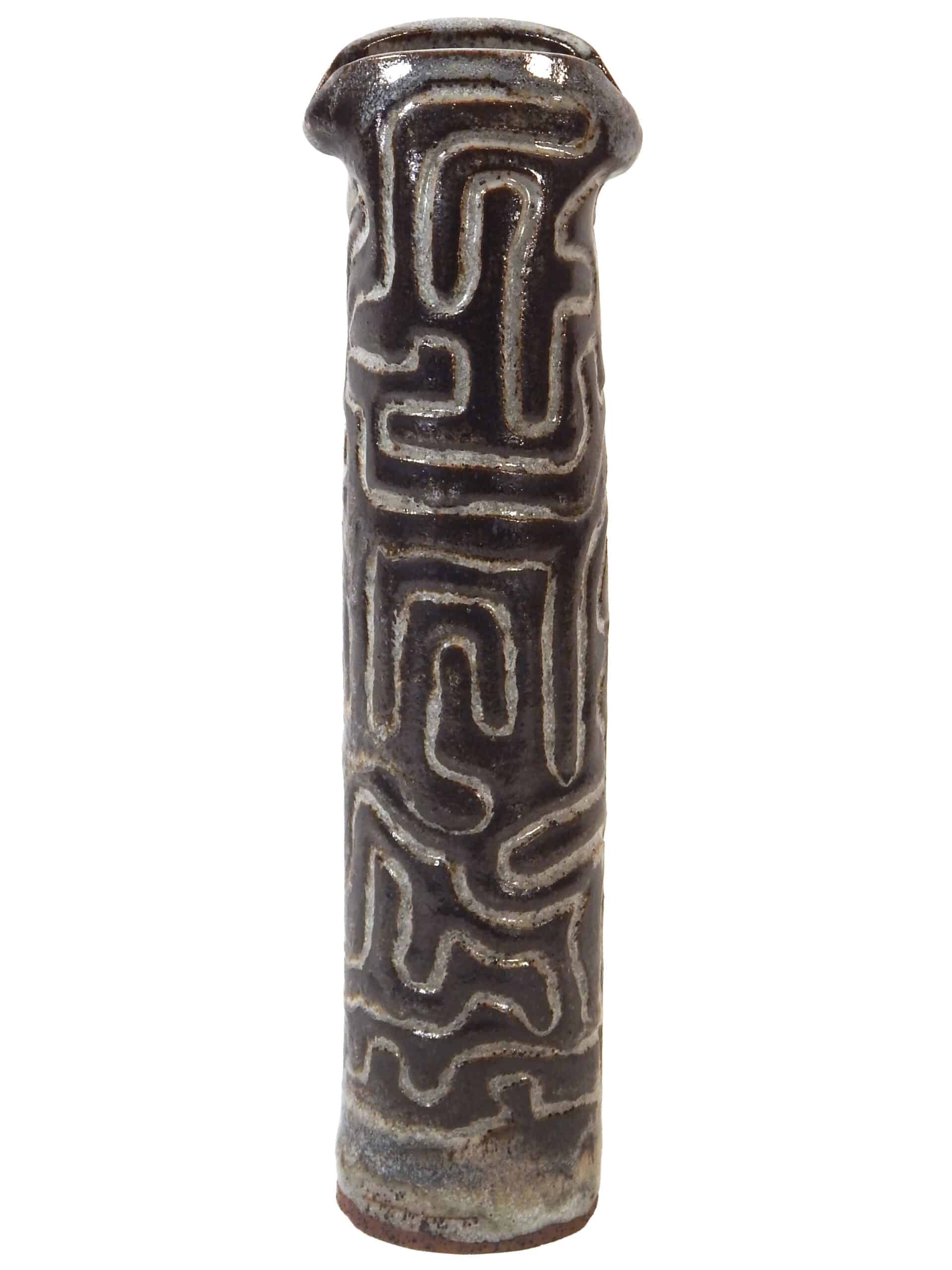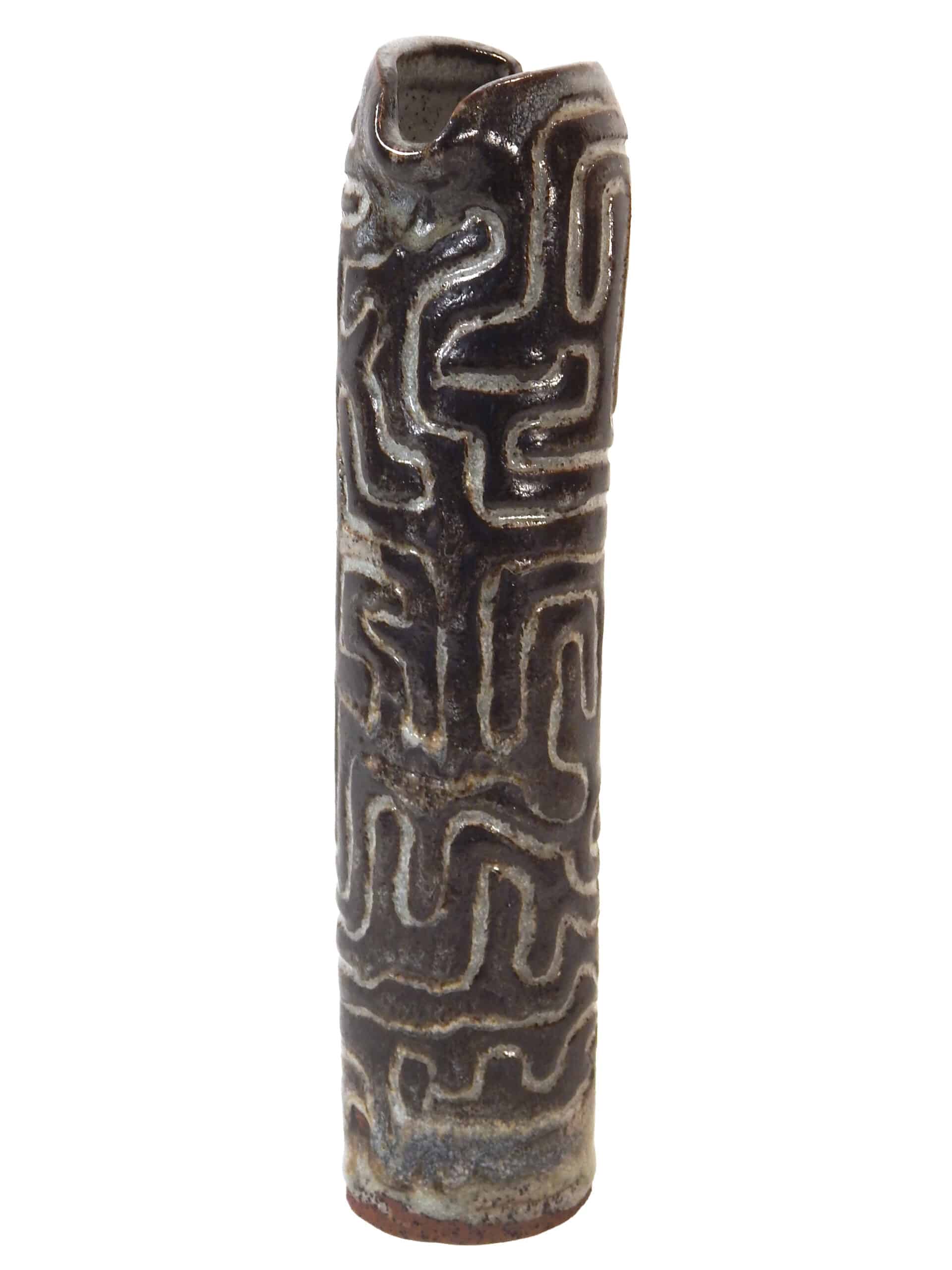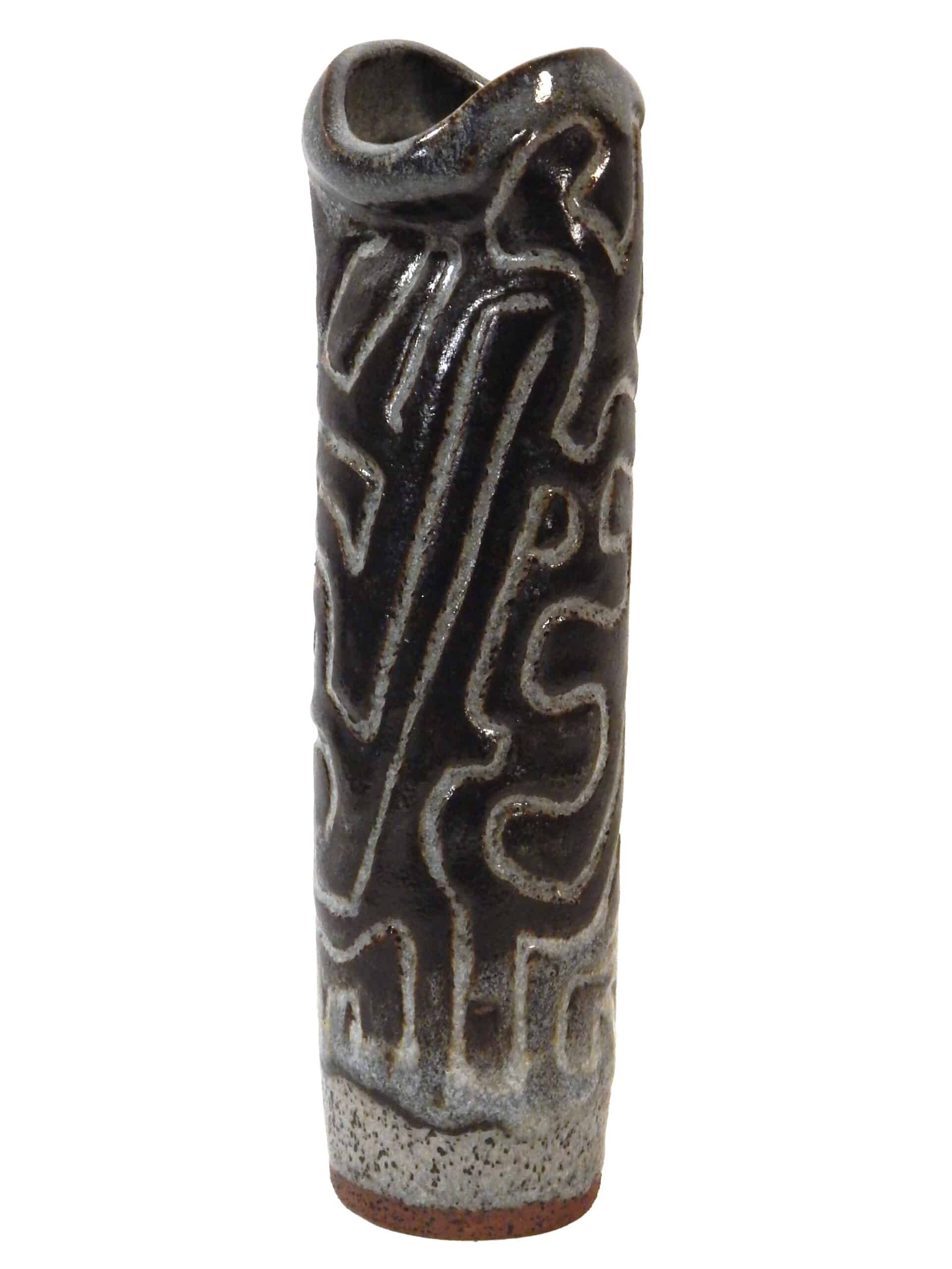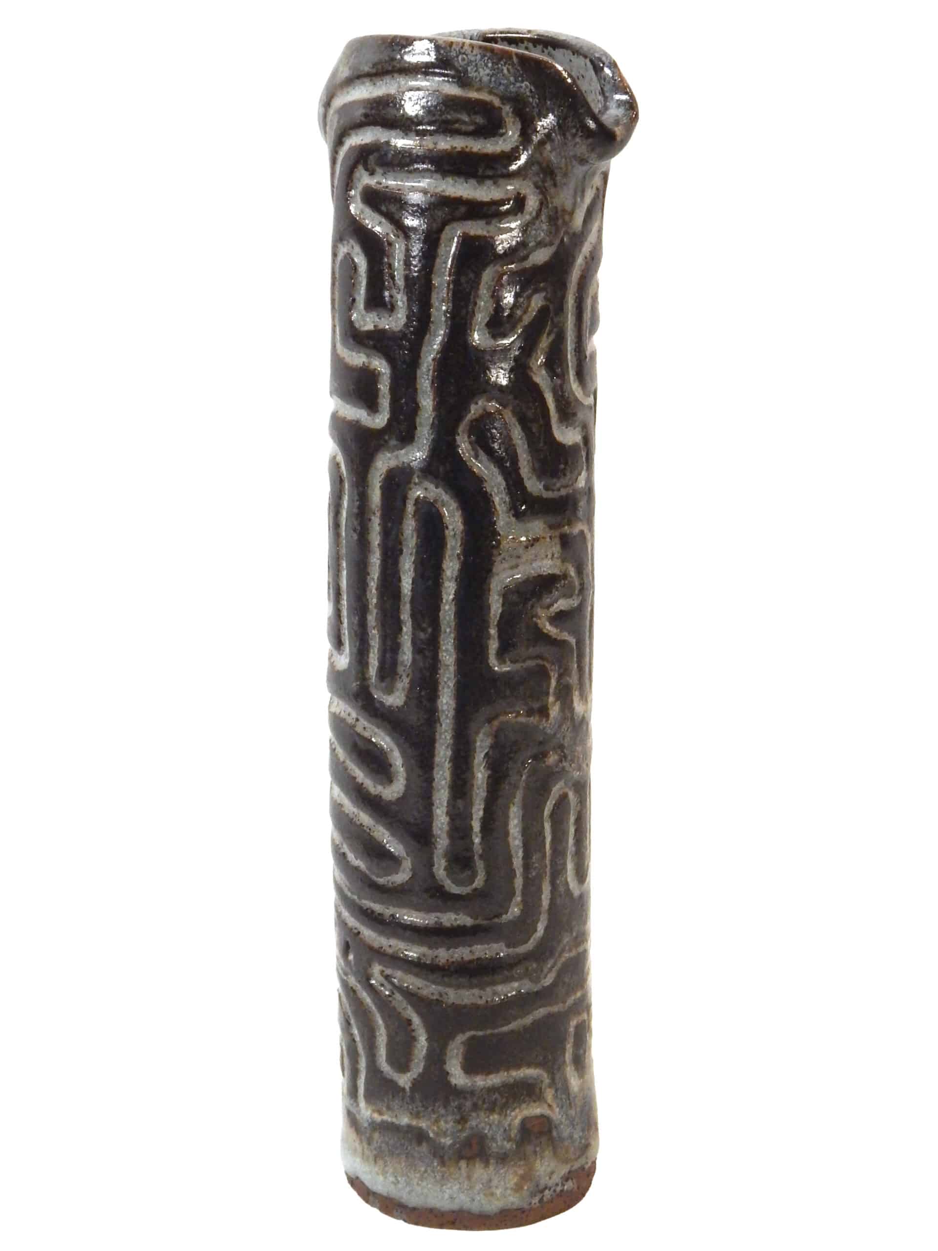 Three Mid Century Studio Vases, In Shades Of Gray with Etched, Laberenth-Like Linework by Sheldon Carey (1911-2000)