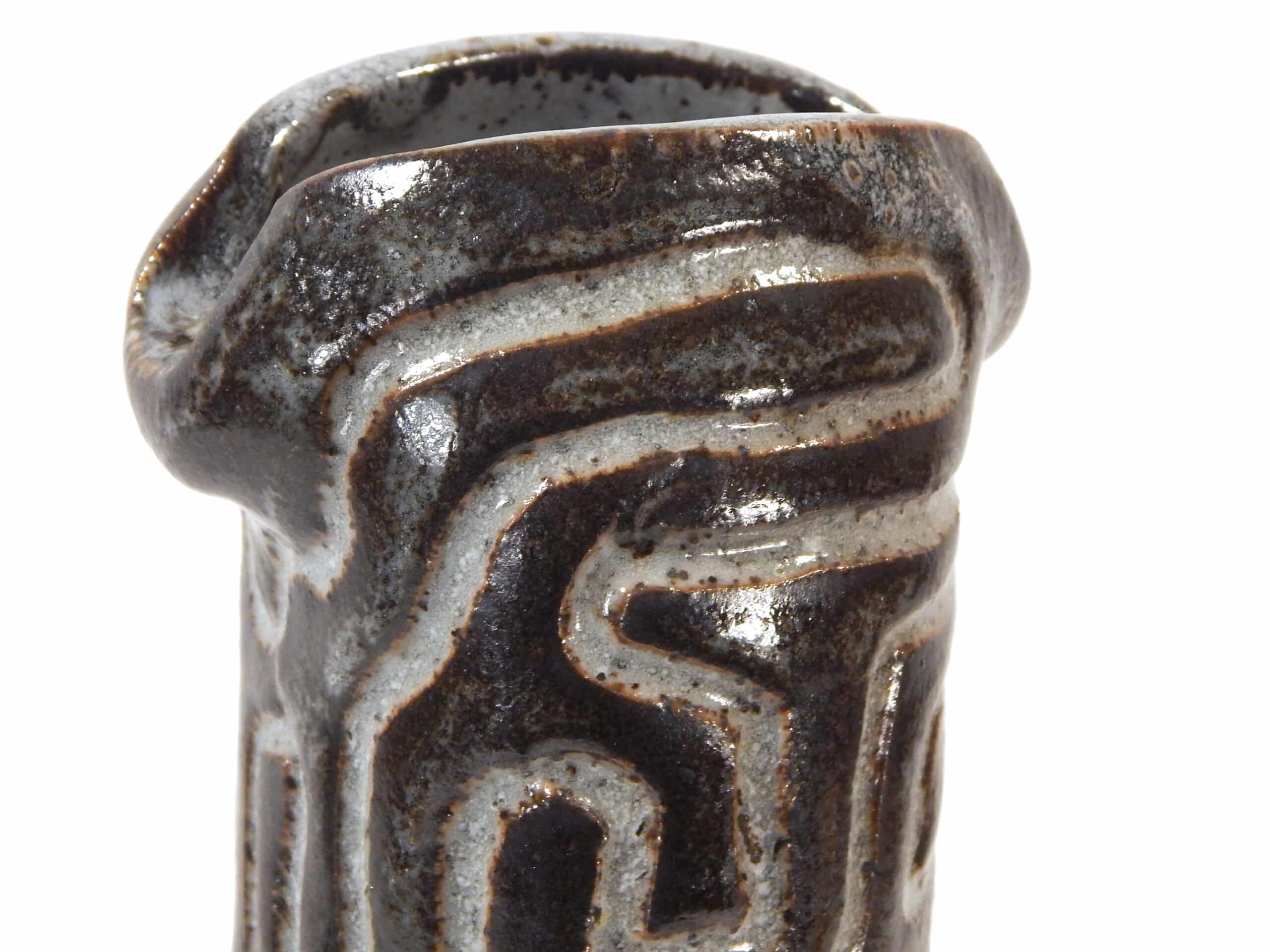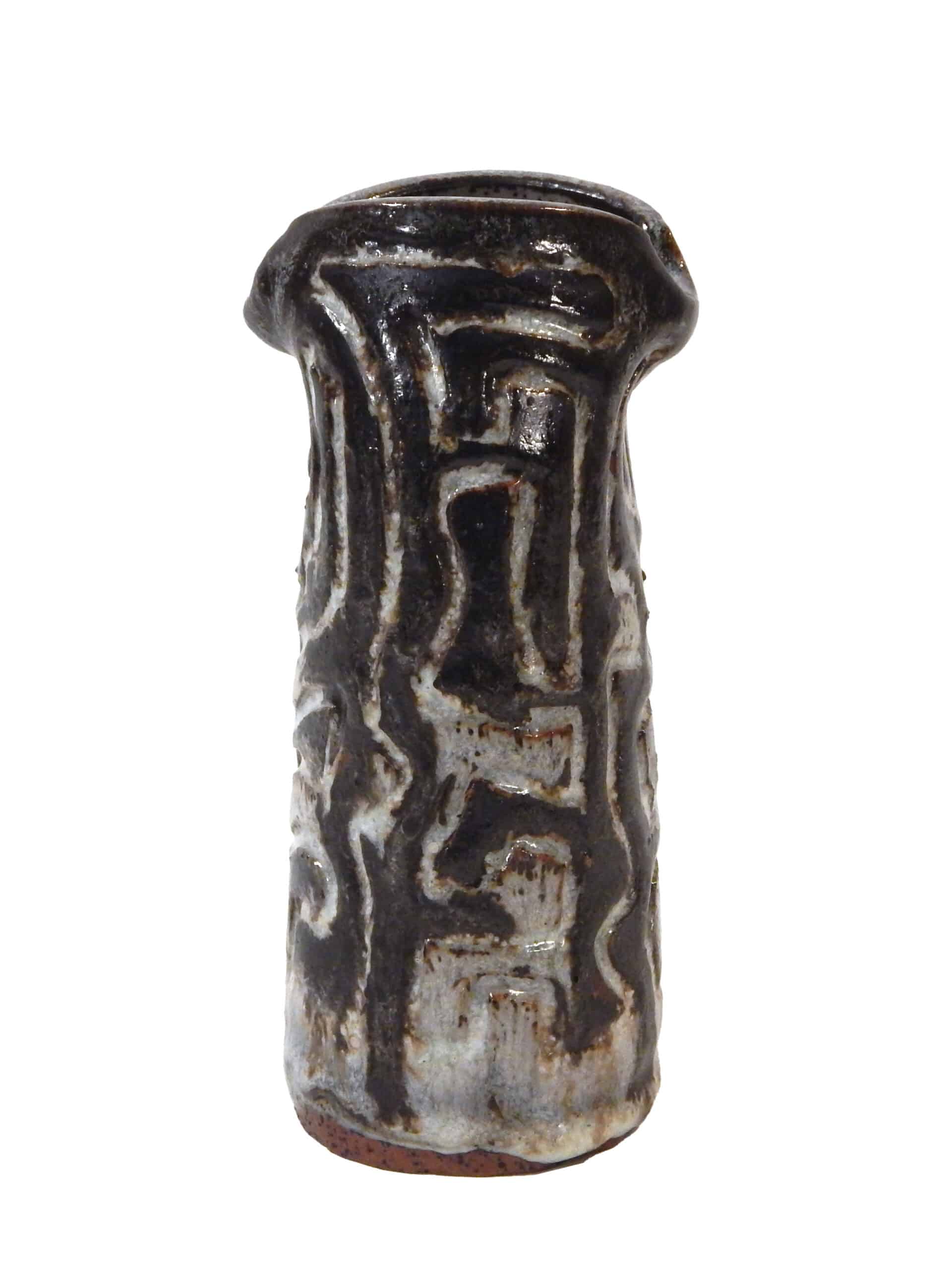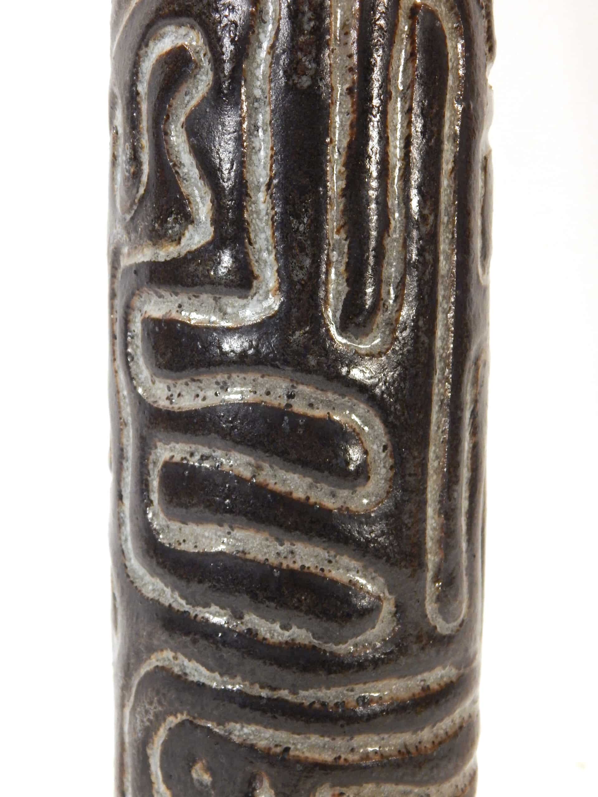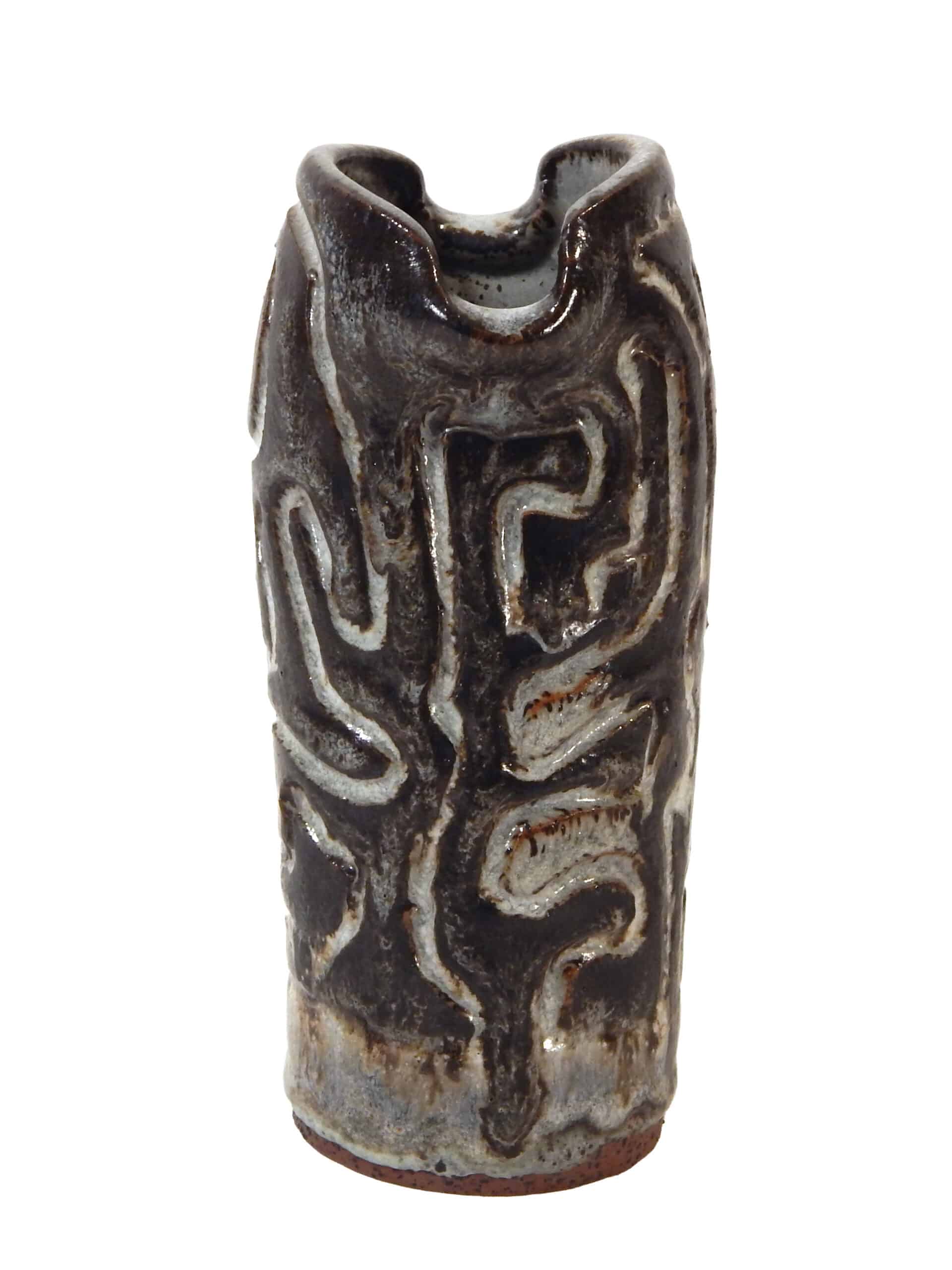 Three Mid Century Studio Vases, In Shades Of Gray with Etched, Laberenth-Like Linework by Sheldon Carey (1911-2000)