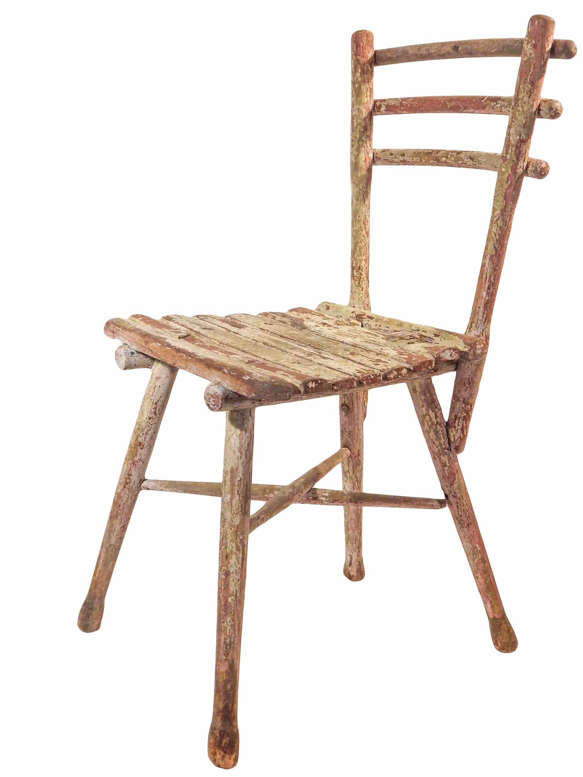 Early 19th Century, Primitive Slat Seat, Side Chair with Great Original Paint