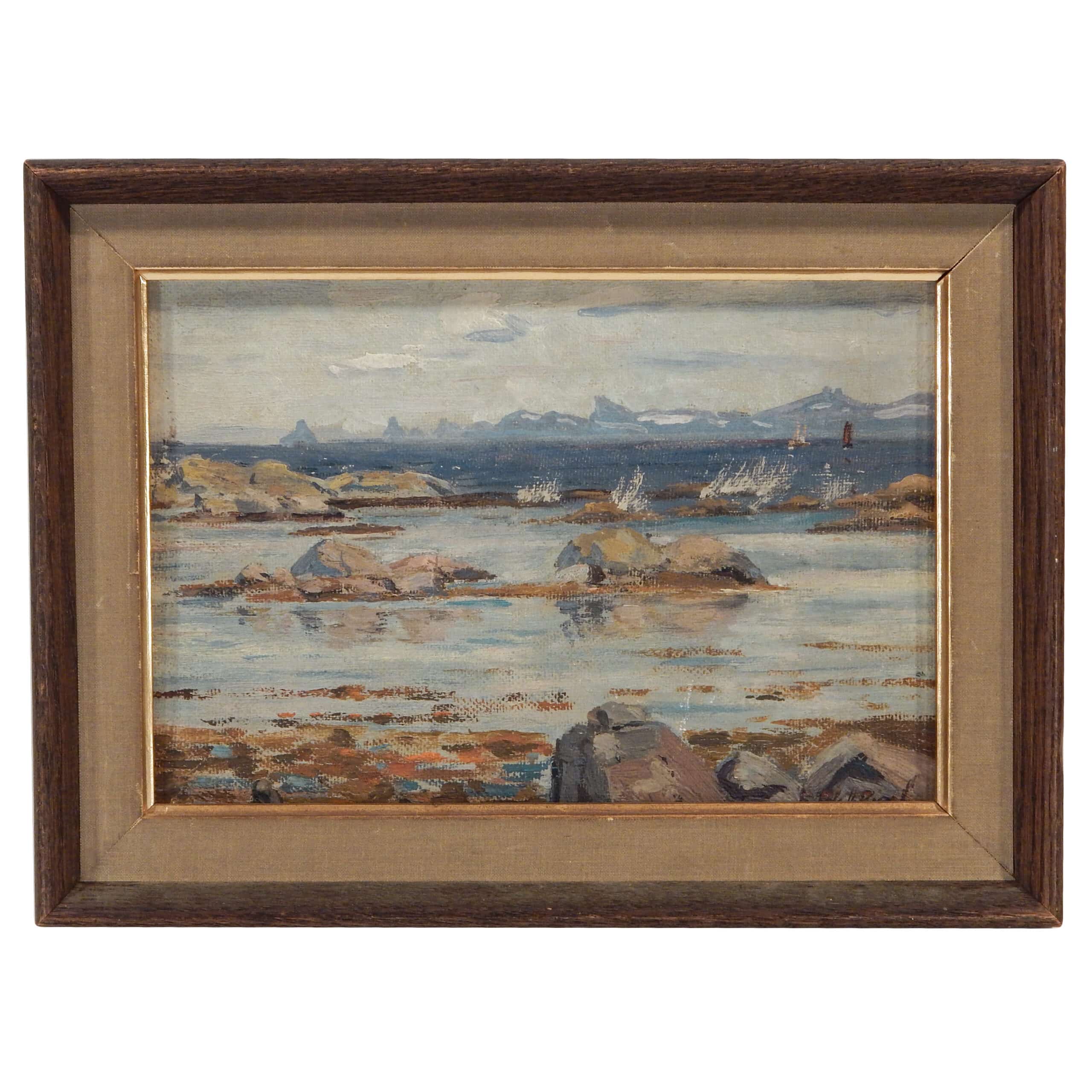 Small Seascape of a Rocky Shoreline in Vesterålen, Norway  Titled ‘Amdöen den anden side’ or ‘The Other Side’