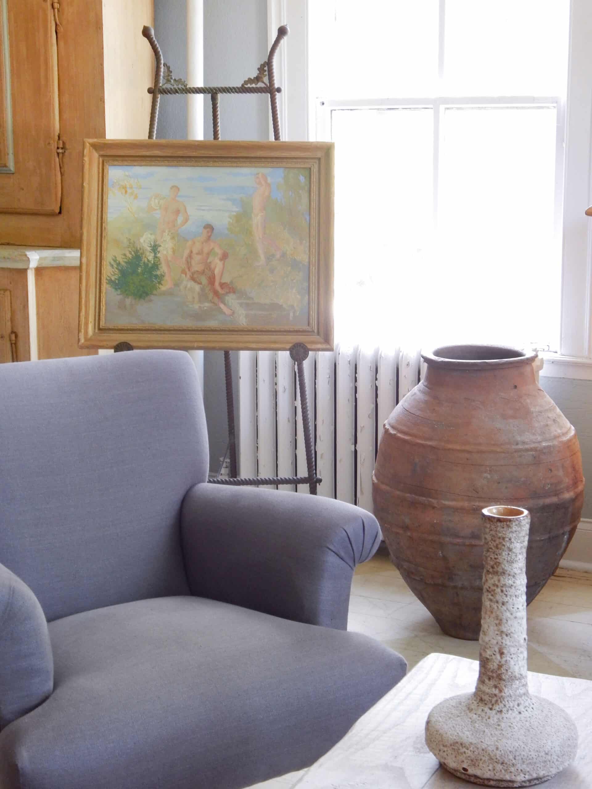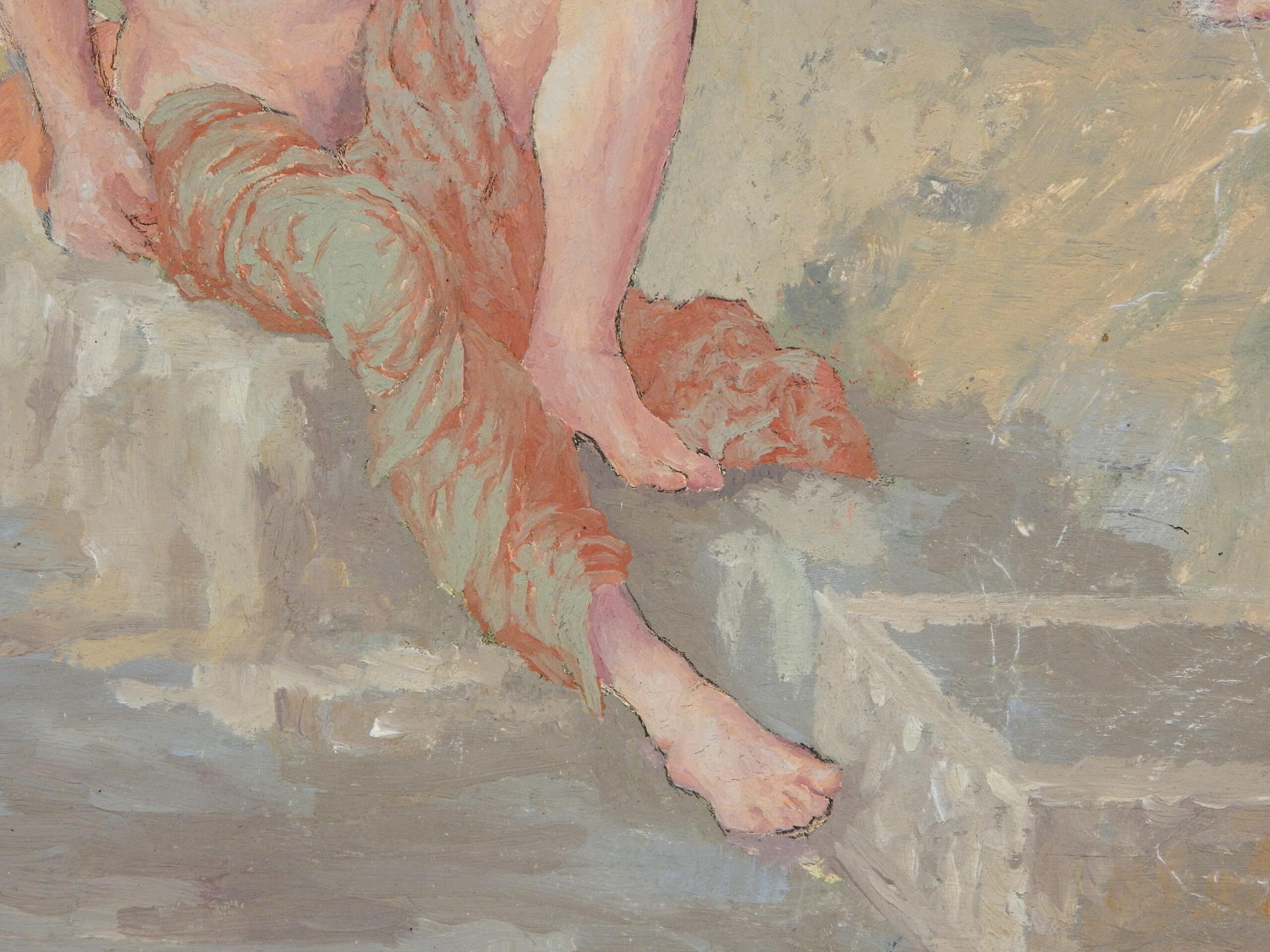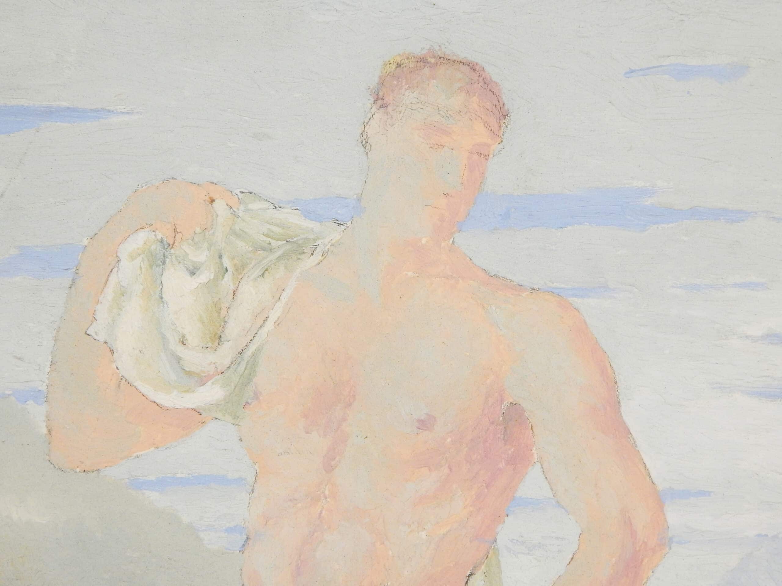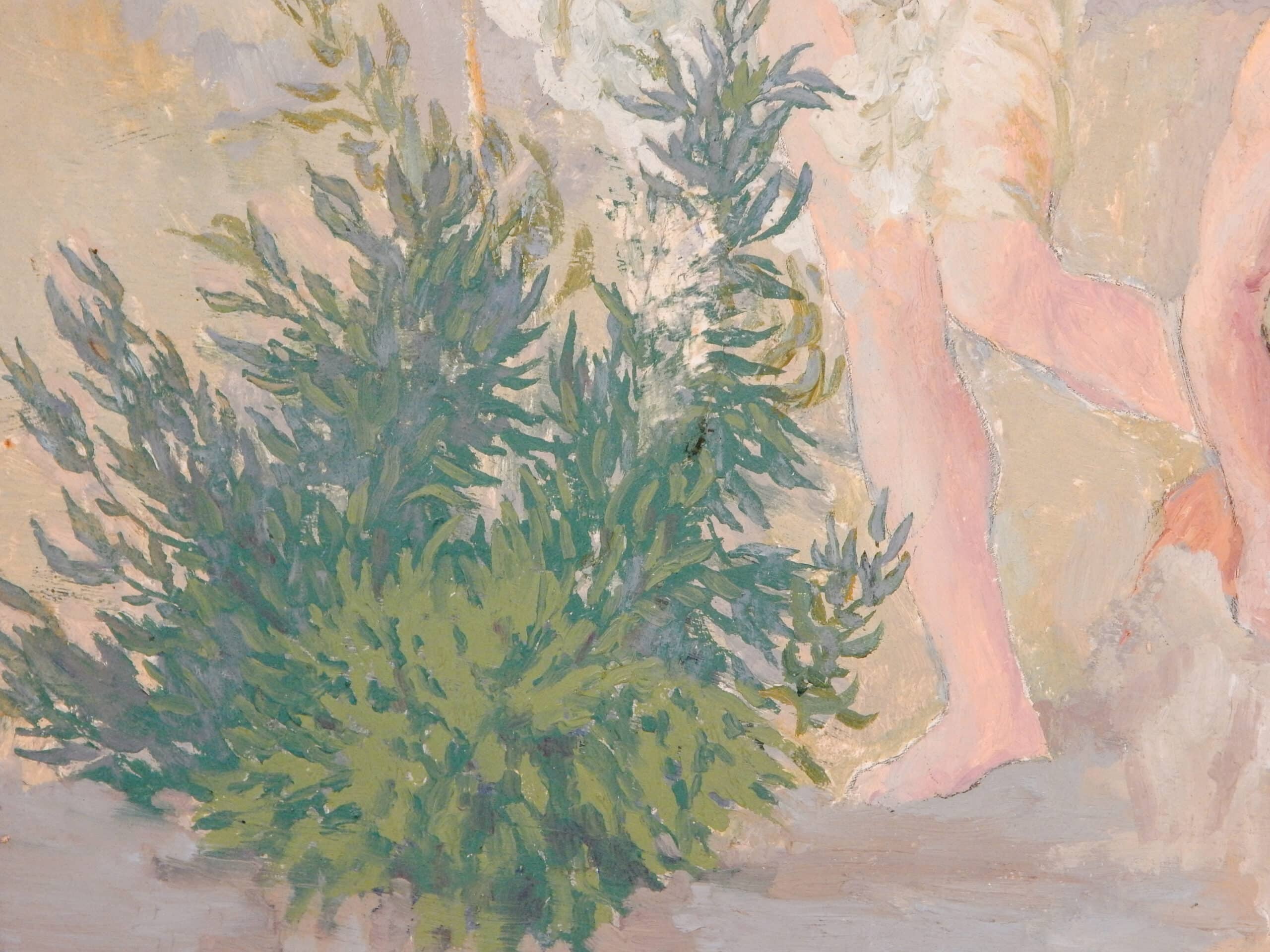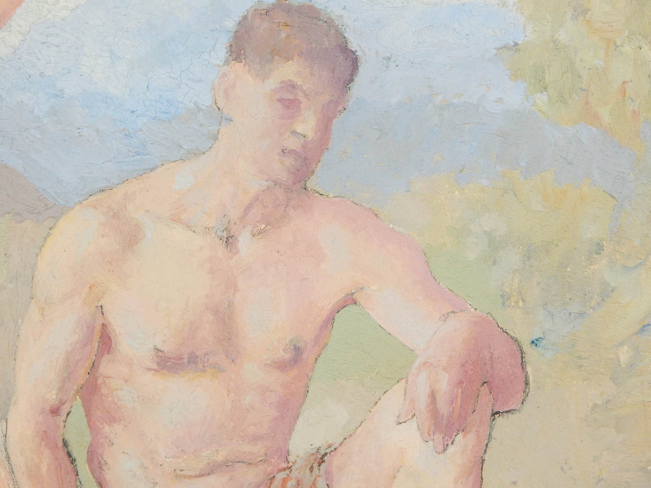 Unusually Painted Scene of Three Men Bathing In Nature