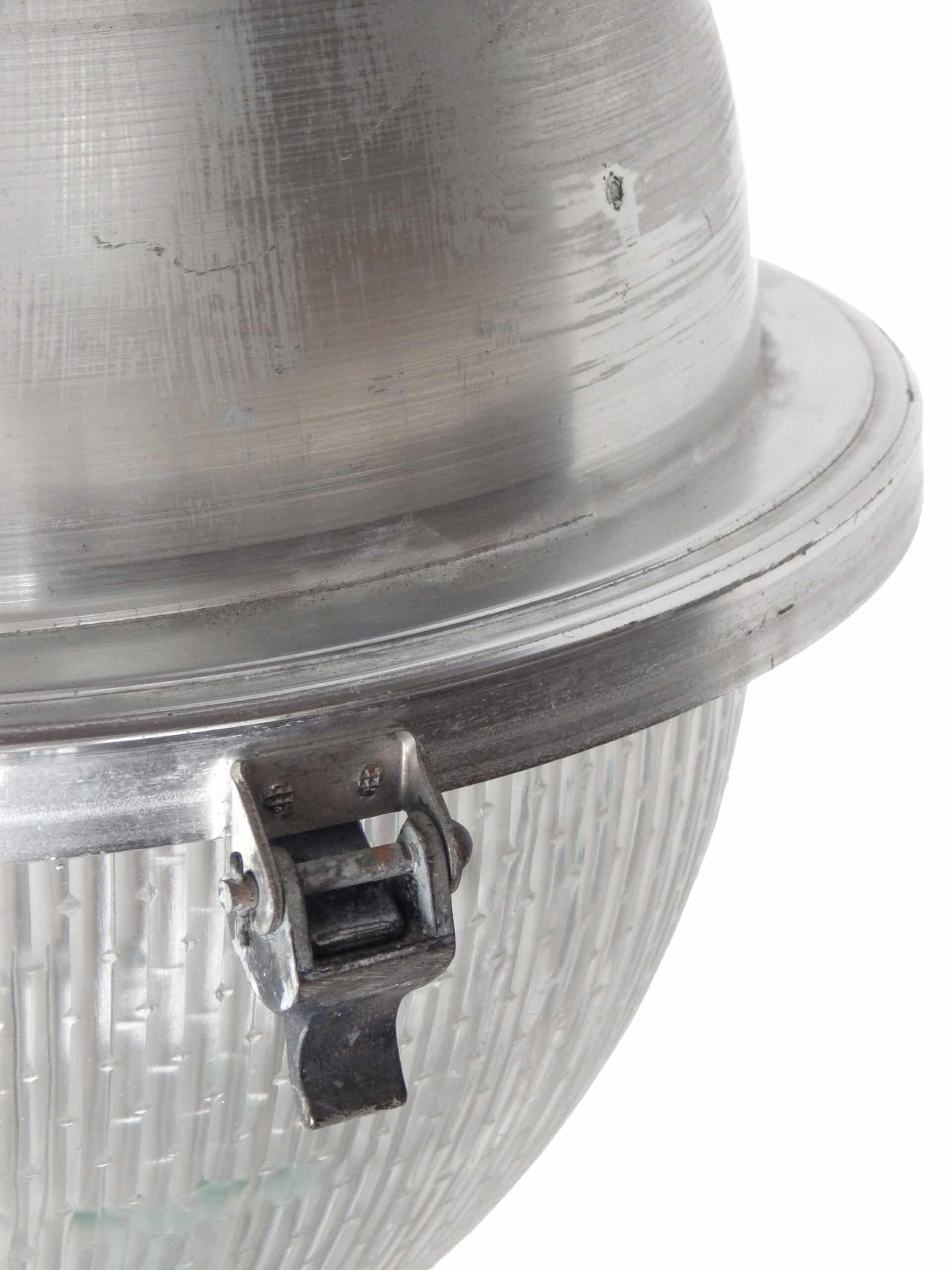 Early 20th Century, Industrial Holophane Street Lights, Rewired as Hanging Fixtures with Aluminum Pole