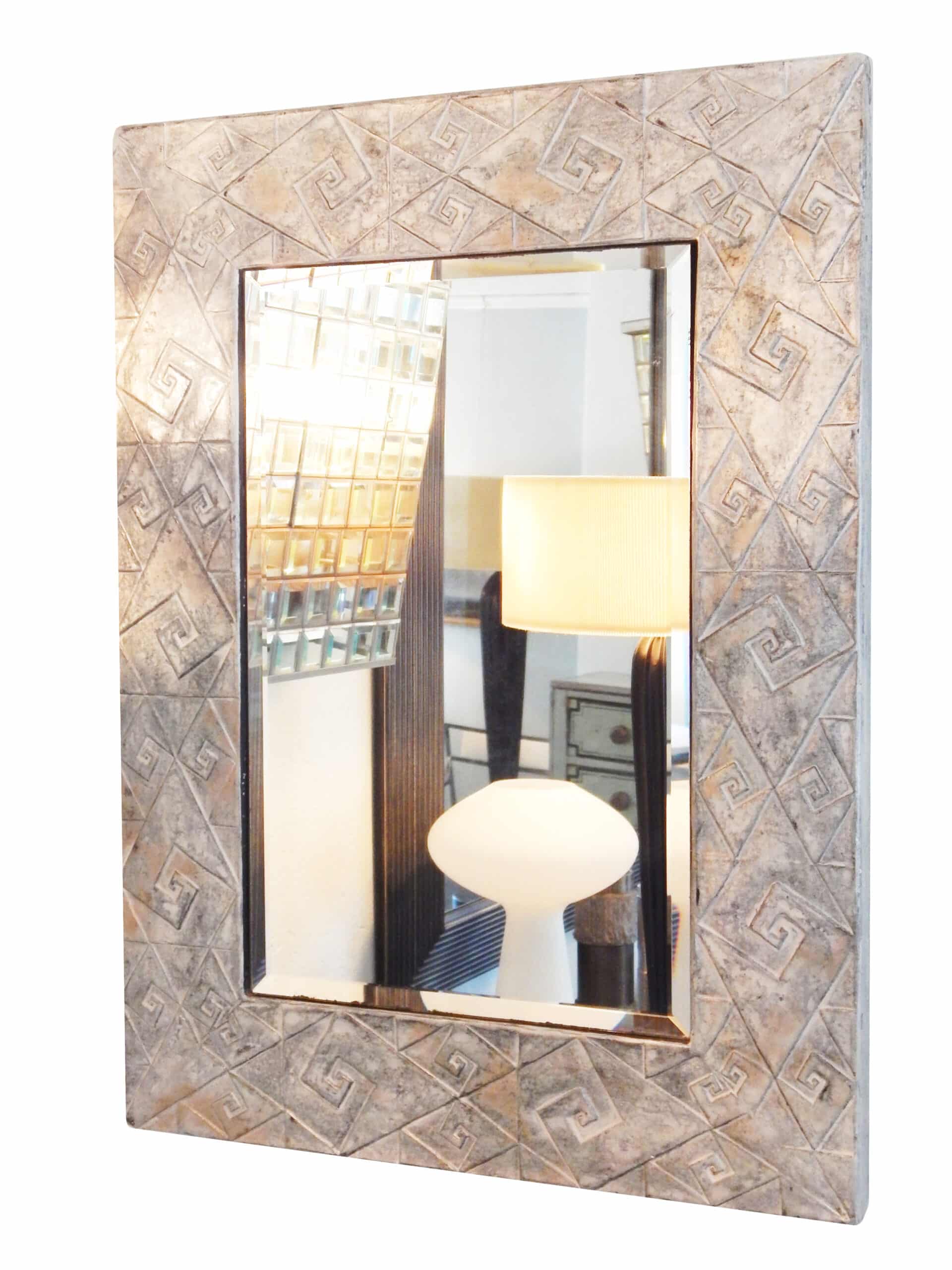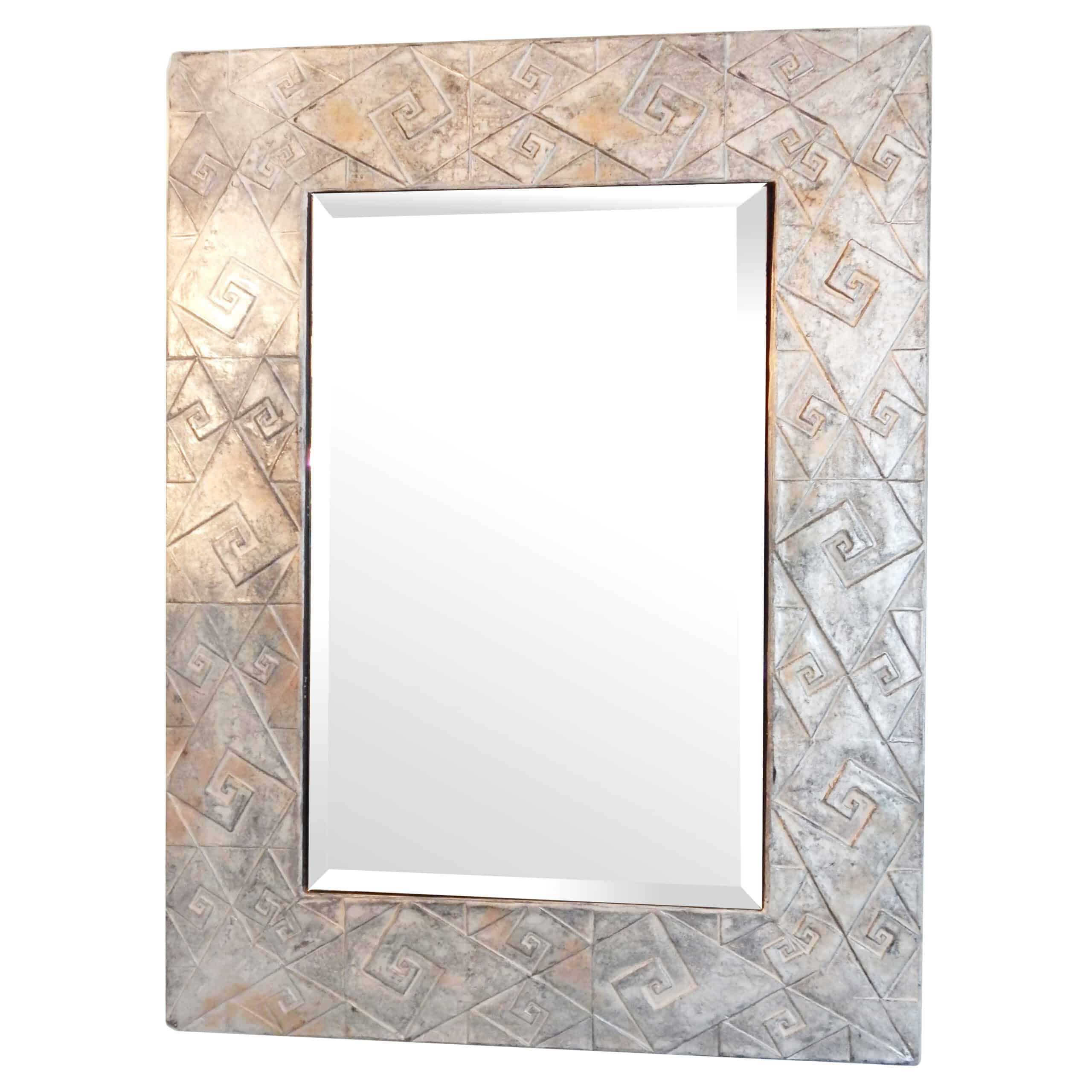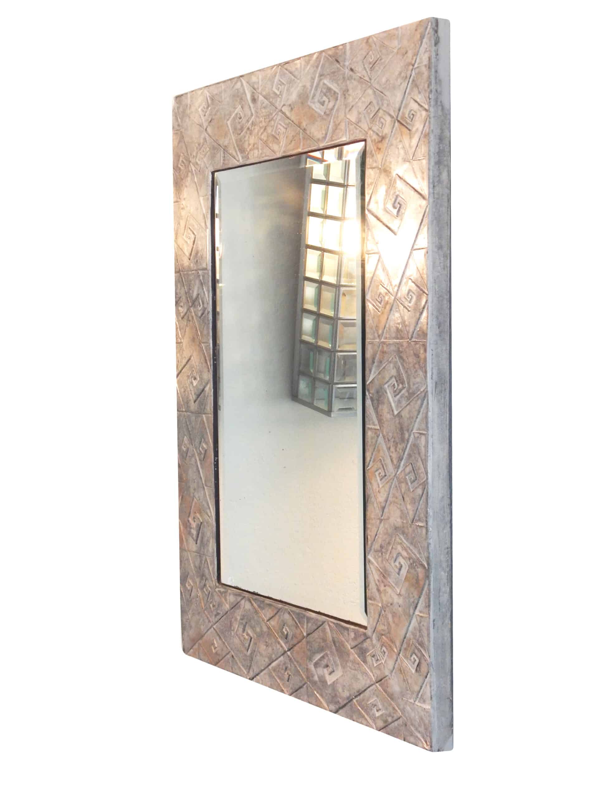 Zinc Framed Mirror with Geometric Design & Beveled Glass